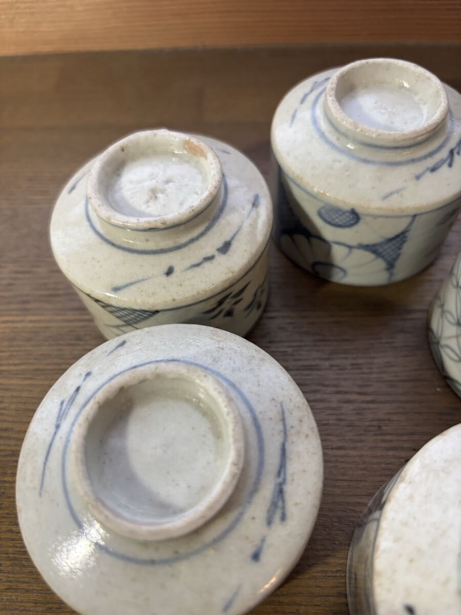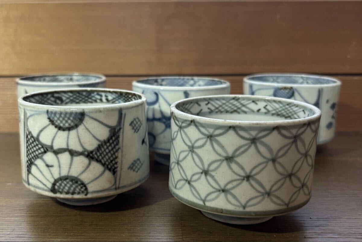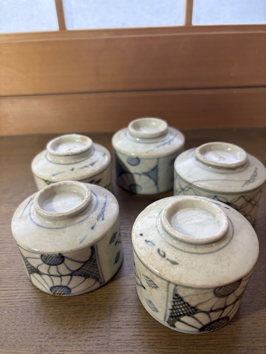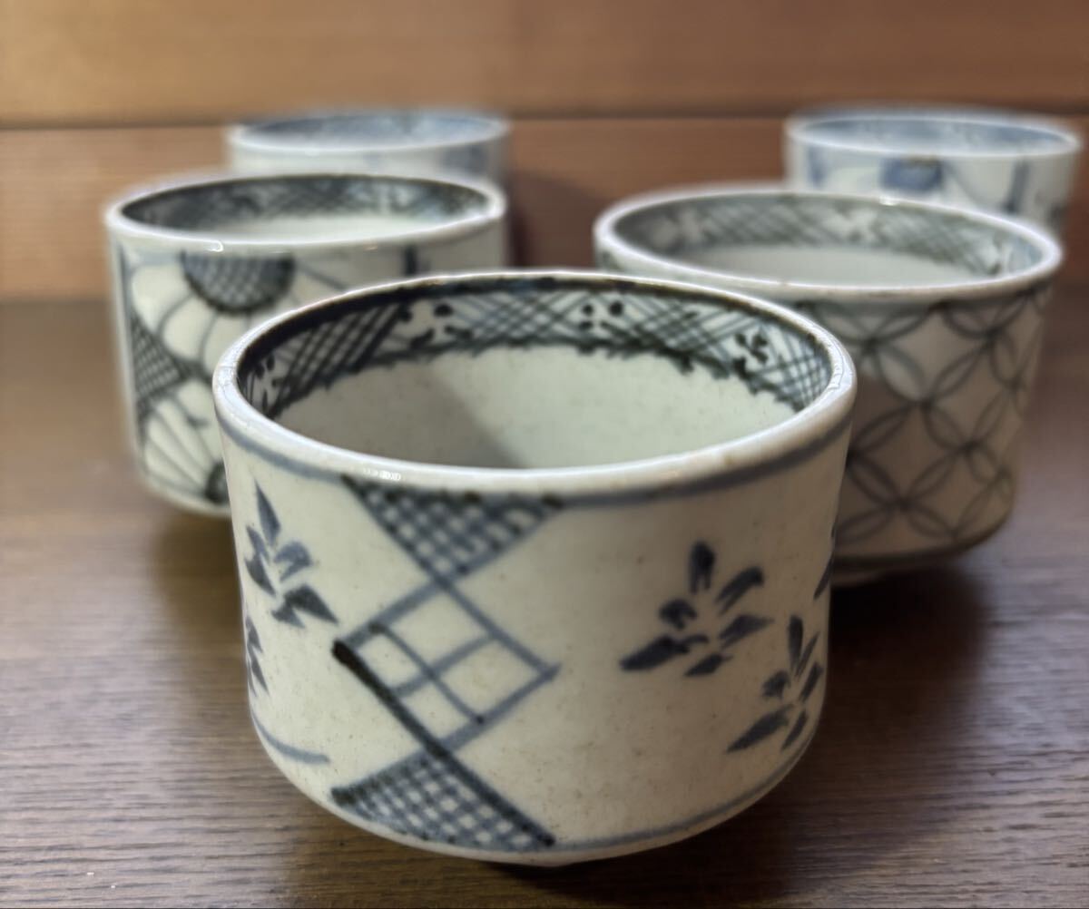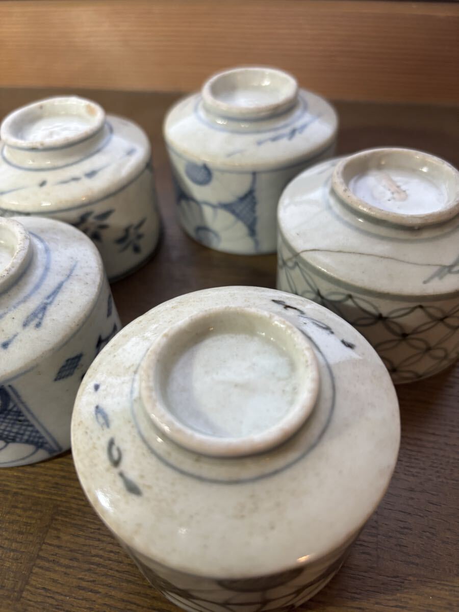 初期 古伊万里 蕎麦猪口。5個。それぞれにニューがあります。参考品に。