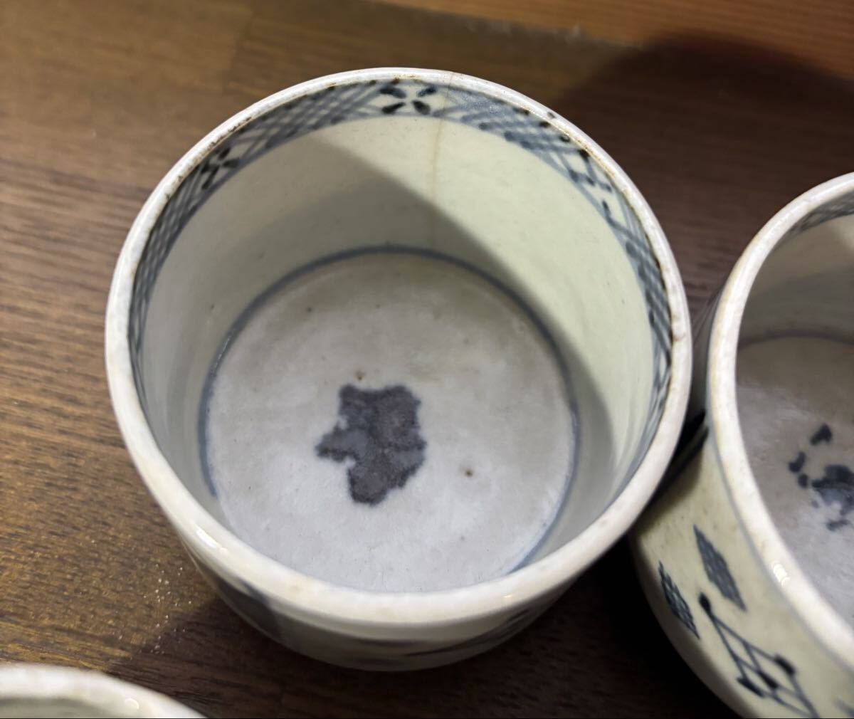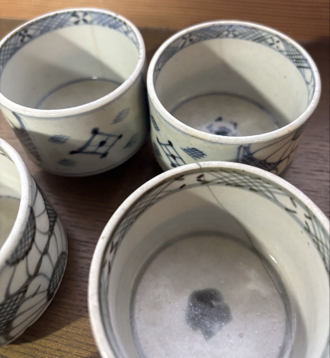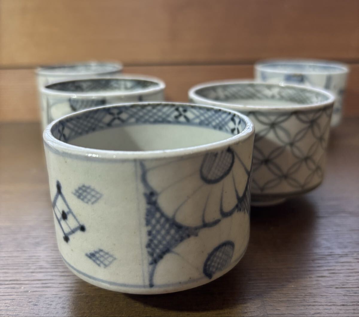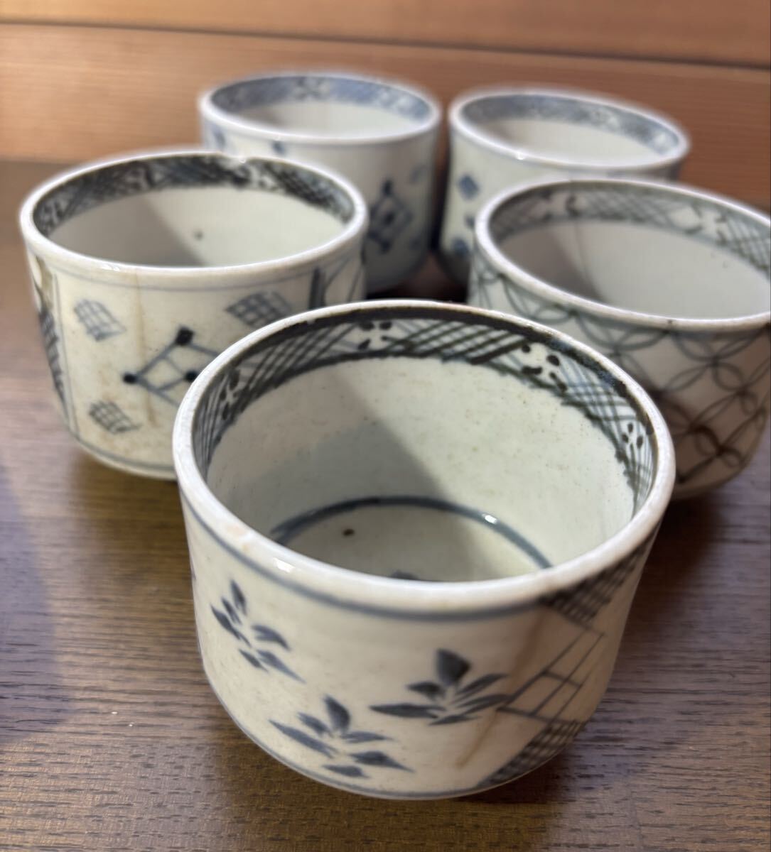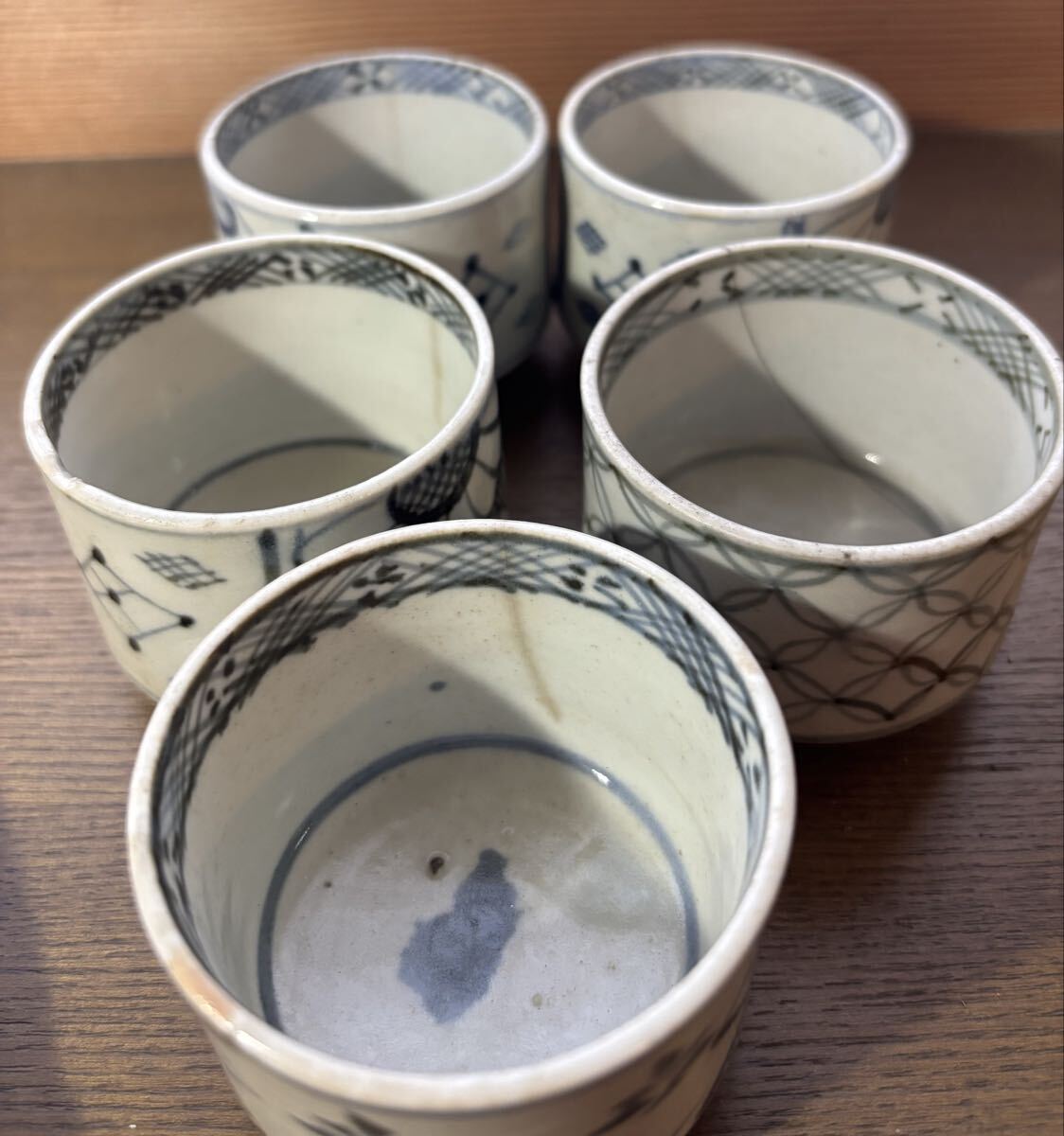 初期 古伊万里 蕎麦猪口。5個。それぞれにニューがあります。参考品に。