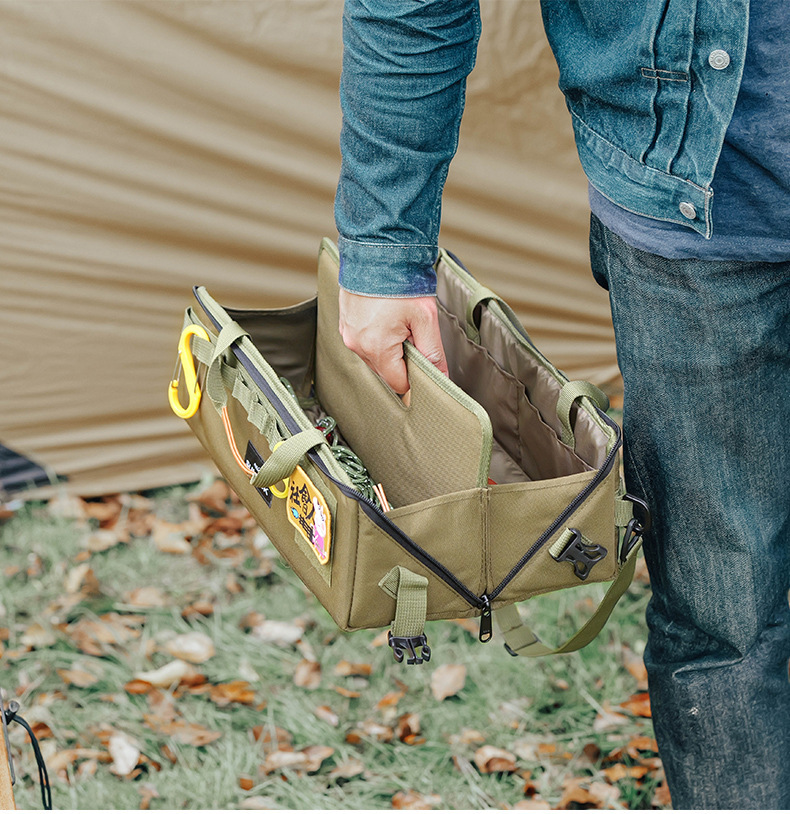 新品 キャンプ用 超高品質 折りたたみ自立式ツールハンマー収納ケース 防水 1050d オックスフ ォード アウトドア野外登山 41x14x14cm 緑