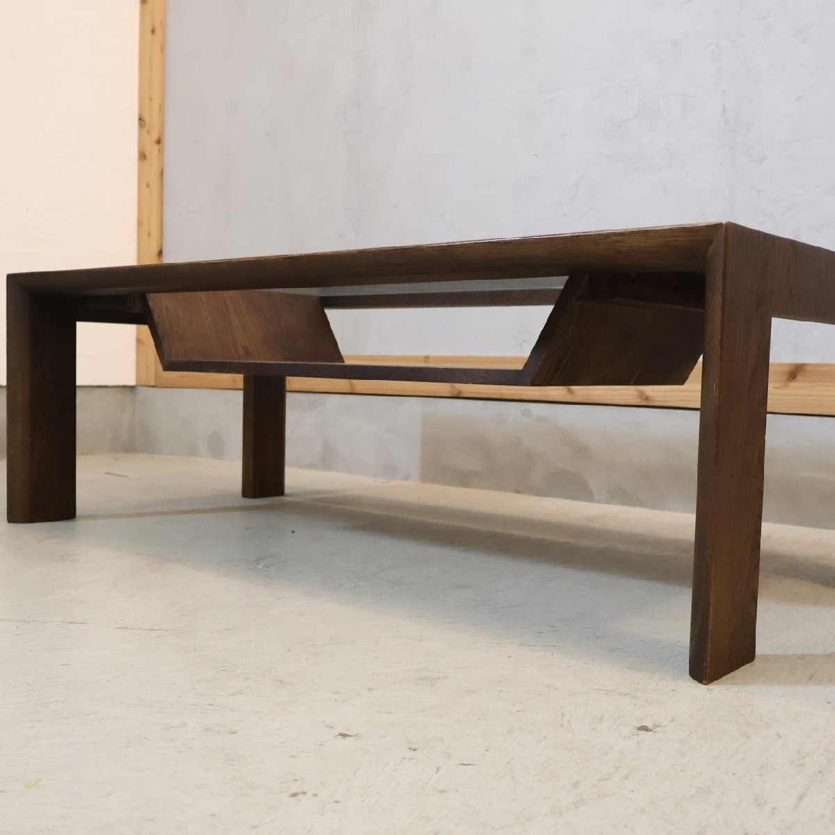 オーク材を使用したスッキリとしたフォルムのリビングテーブル。