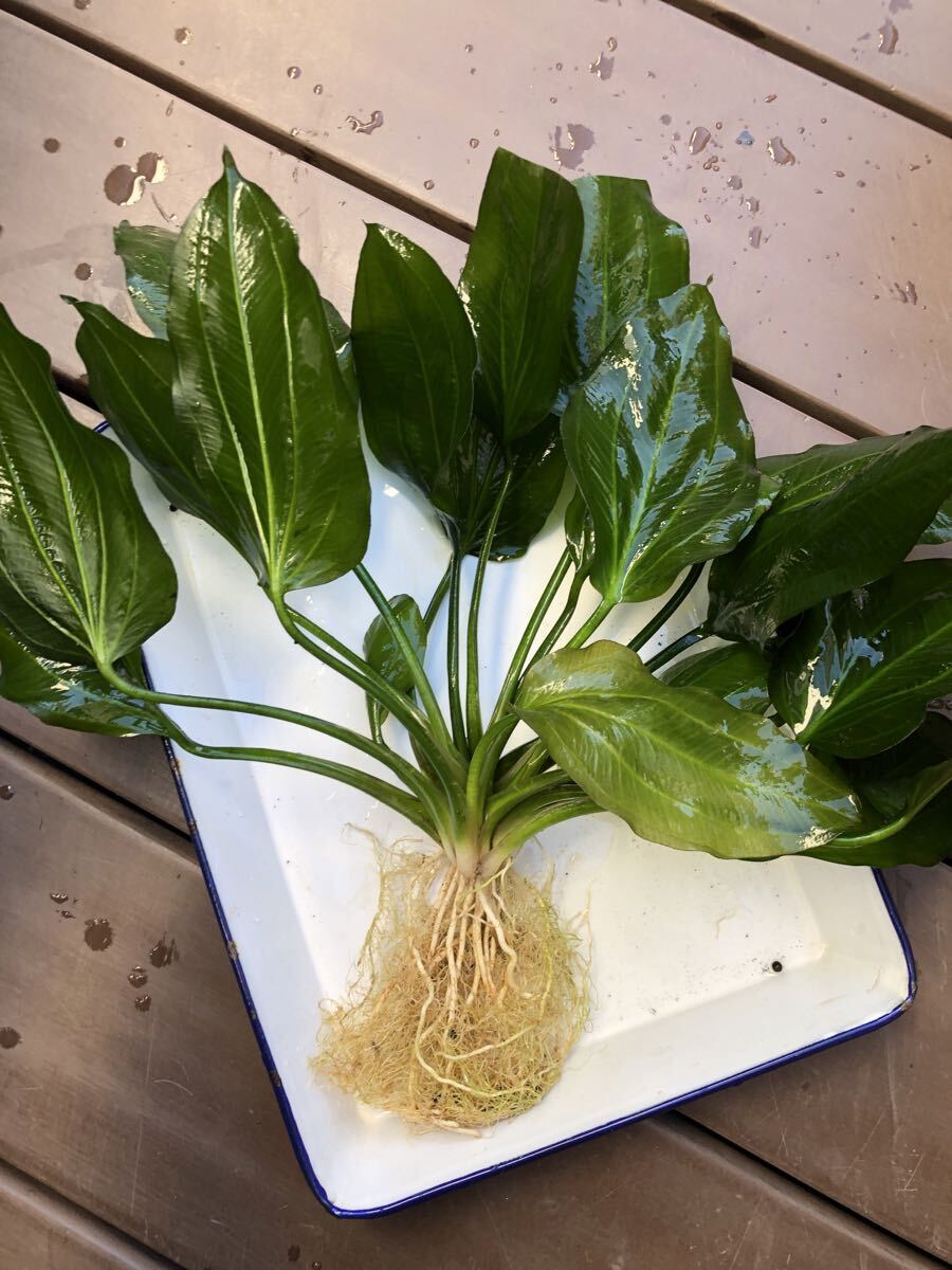 エキノドルスオパクス2000 自宅水槽での増植株です。大きな株でとても元気良くきれいです。名称は購入時のときのものです。トレーの大きさは横36、縦26㎝。水上に出ていた葉先に枯れやカットした部分があります。草体のみの発送です。輸送中に葉が折れたり取れたりすることがあります。素人育成ですので細かなことを気にされる方はご遠慮ください。また生き物ですので状態の変化により出品を取り消す場合があります。以上ご理解の上お願いいたします。