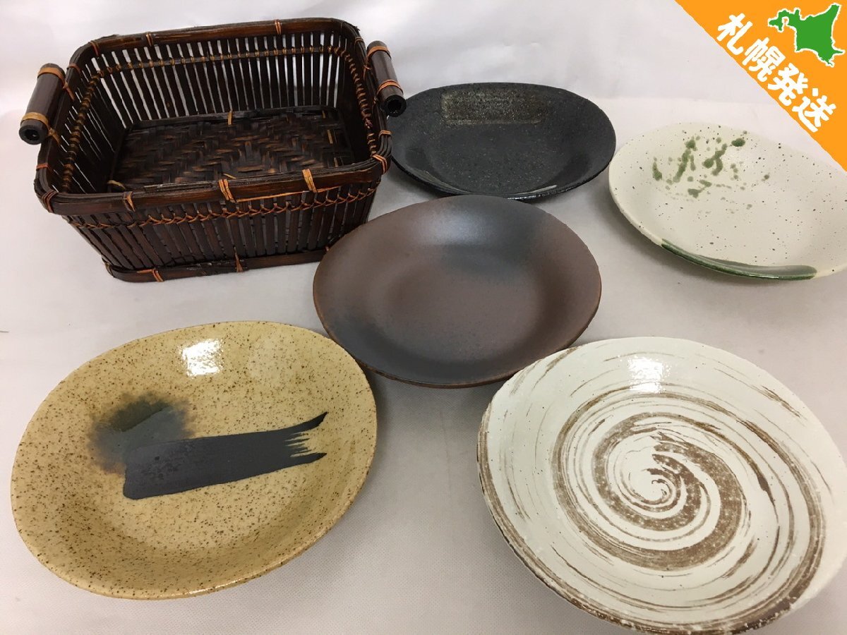 【R1-00754】未使用 大地の宴 カゴ付き カレー皿 5点 セット 大皿 籐編み 小物入れ かご 籠 編み 箱付き【千円市場】