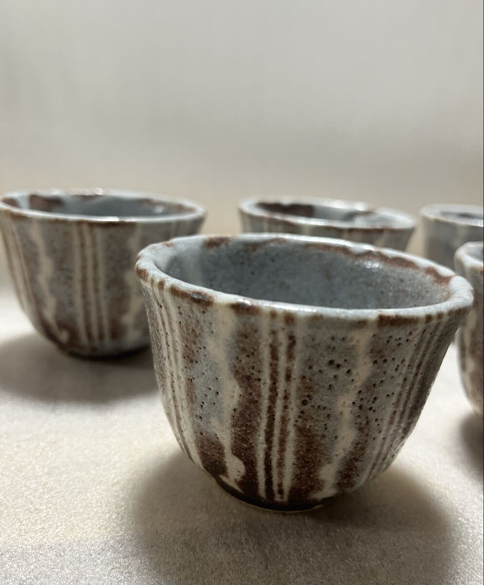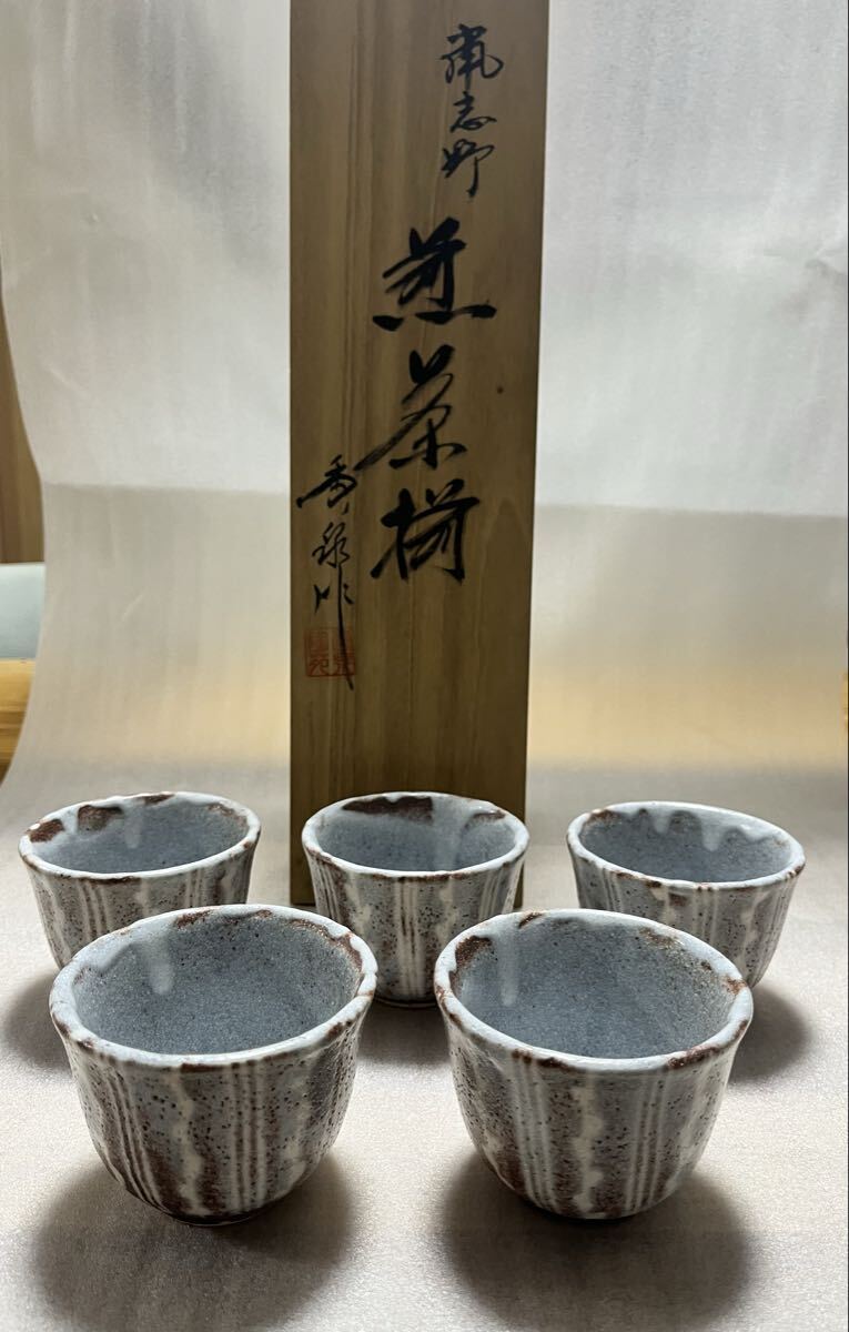 未使用 新品 美濃焼 鼠志野 志野 湯呑揃え 5客 湯呑み 志野焼 秀泉 浅田秀一 共箱 木箱 裏印 煎茶 茶道 茶器