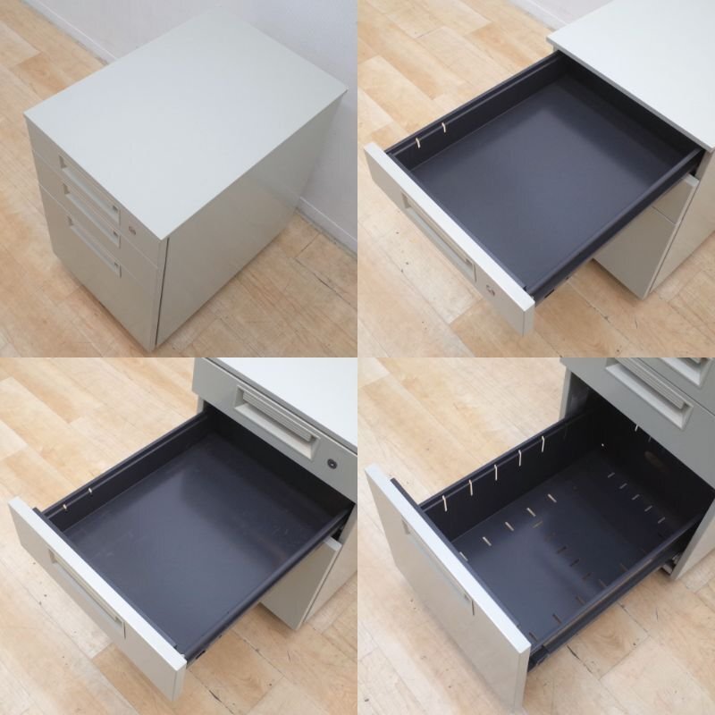 プラスのJSデスクシリーズの3段ワゴン。 落ち着いたグレー配色のデザインで、オフィス空間に合わせやすい! 作業スペースの横にパーソナル収納としてお手元の資料や事務小物を気軽に保管できます。 最下段の引き出しは奥の方の収納物も取り出しやすいダブルサスペンション式!ぎっしり詰め込んでも安心です! ぜひ「わたし専用」の収納スペースをどうぞ! ※写真で掲載の商品そのものが届くとは限りません。複数入荷した中の1点を掲載している場合がございます。 ※恐れ入りますが、シリンダー鍵やペントレーなどのオプションの有無については、直接お問い合わせいただければと存じます。 |