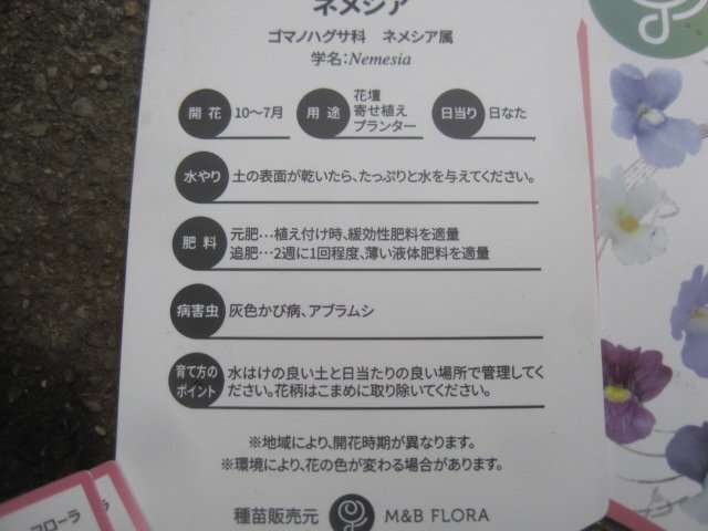 タイプ:ゴマノハグサ科ネメシア属の半耐寒性多年草(マイナス5度まで)