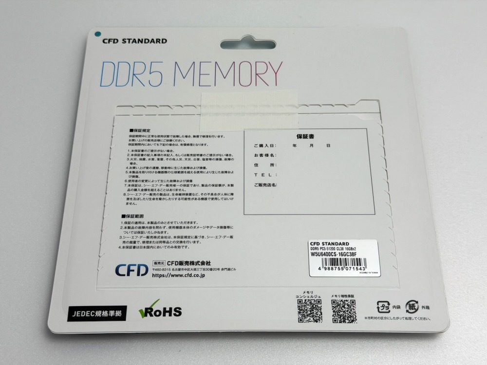 CFD|シーエフデー CFD Standard DDR5-6400 デスクトップ用 グラフェン銅箔ヒートシンク搭載 メモリ 16GBx2枚組 W5U6400CS-16GC38F