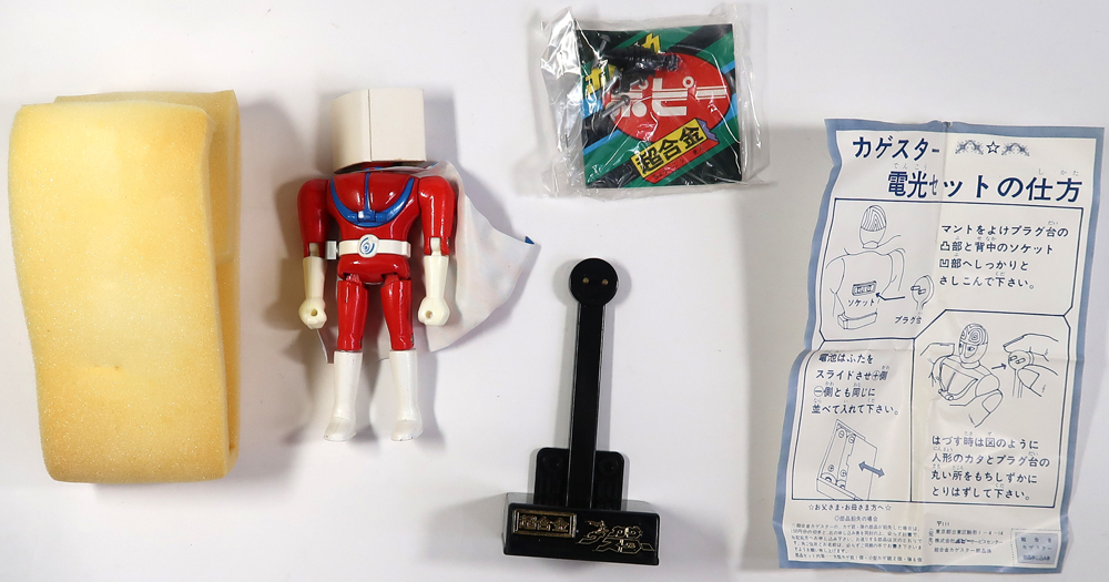 出品は画像の物が全てです。箱は擦り傷や汚れがあります。箱を開けての状態は画像でご確認ください。フィギュアは多少なりとも擦れや汚れはあるかもしれませんが状態は悪くないです。光が点滅するギミックの動作確認は取れておりません。あとは画像をよくご覧になって確認してください。お取引後はいかなる理由がありましても返品は出来ませんしクレームもお受け出来ません。