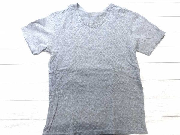 シップス SHIPS ドメスティック ネオお兄系 00s 古着 格子 市松模様 編みパターン Vネック 半袖Tシャツ メンズ コットン100% M グレー です。