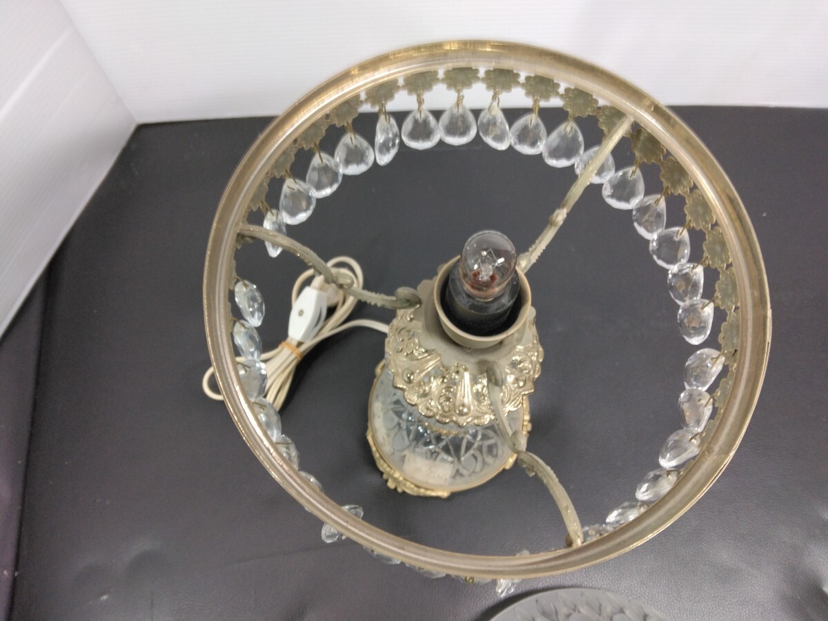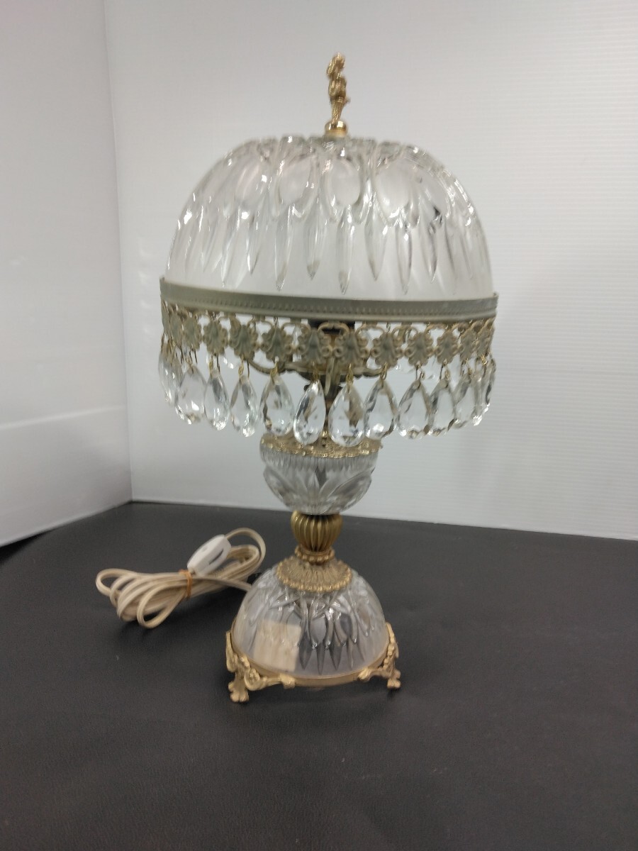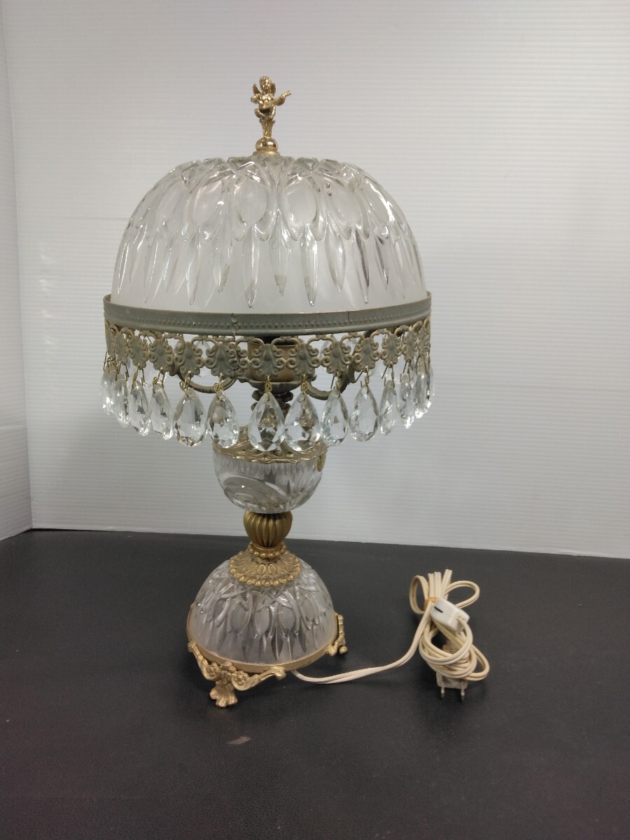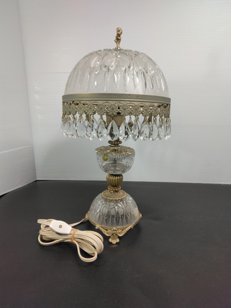 当時物 レトロ イタリア製 アンティーク シャンデリアテーブルランプ ガラス スタンドライト 卓上ランプ 照明 ヴィンテージ 欠品有り