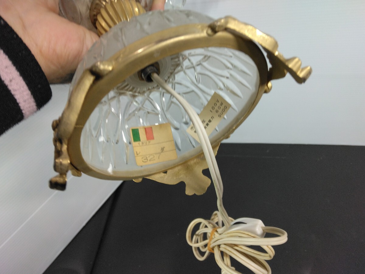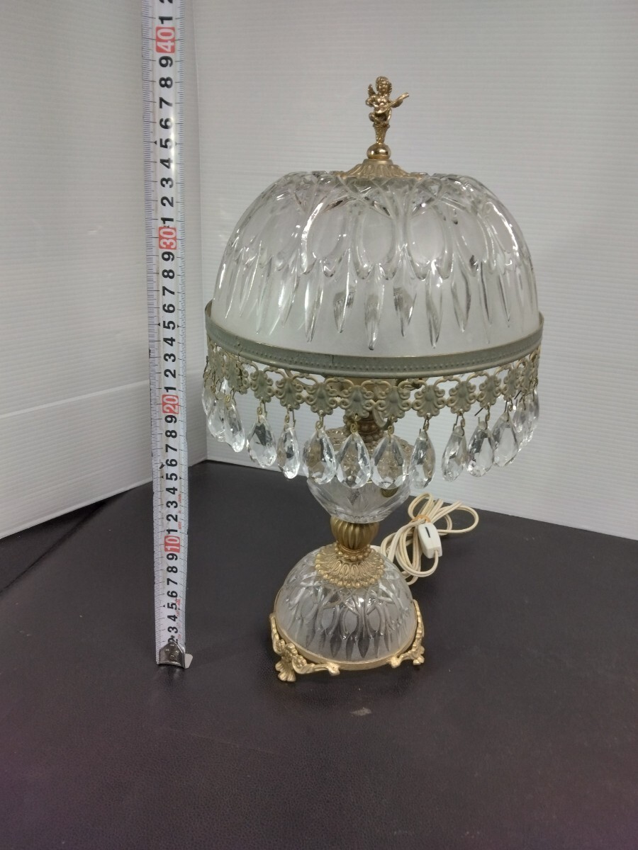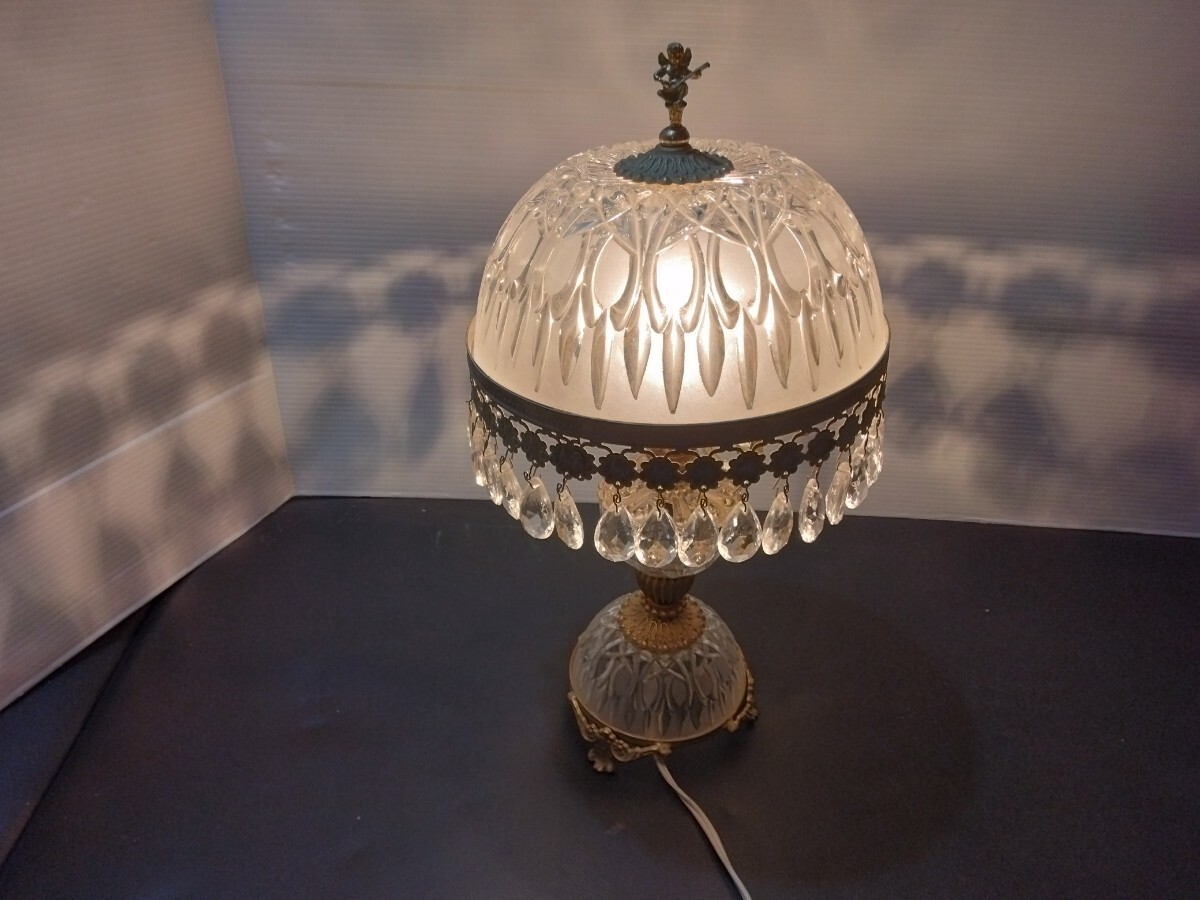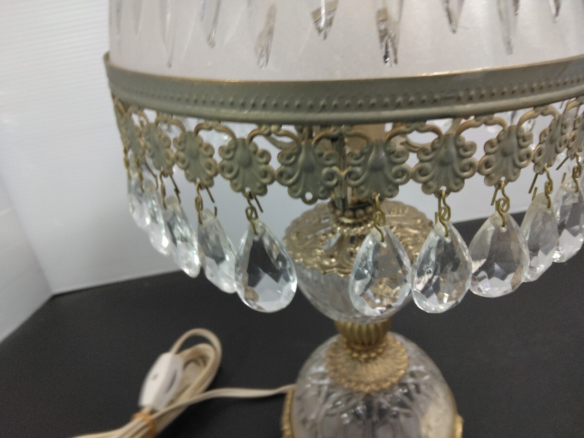 当時物 レトロ イタリア製 アンティーク シャンデリアテーブルランプ ガラス スタンドライト 卓上ランプ 照明 ヴィンテージ 欠品有り