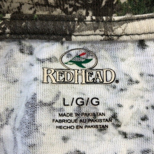 C443 レッドヘッド L アメリカ古着 半袖 コットン リアルツリーカモ柄 Tシャツ グリーン REDHEAD メンズ