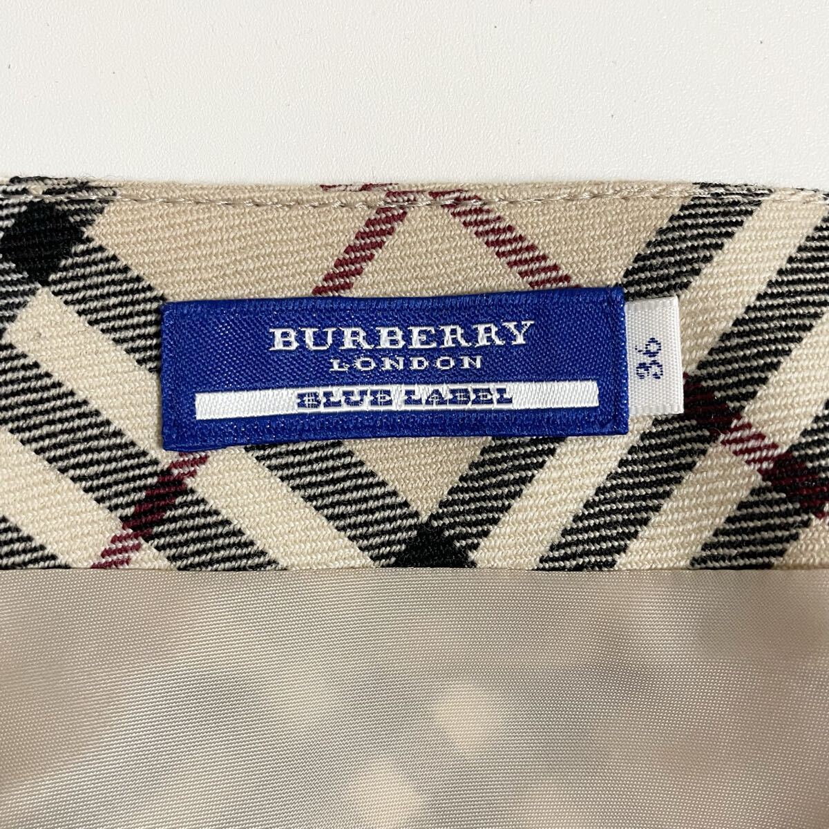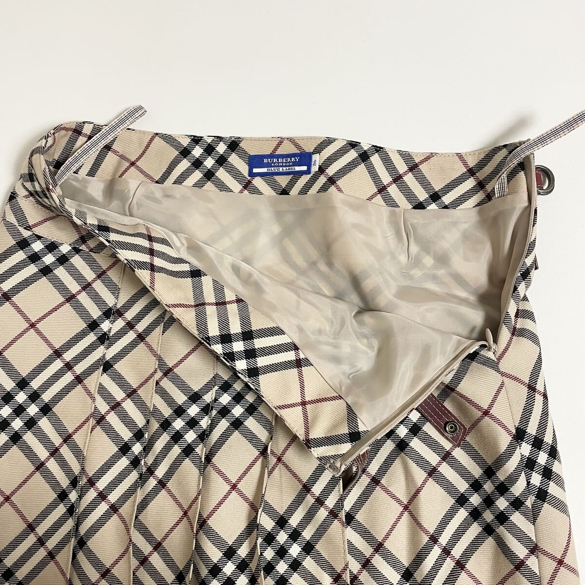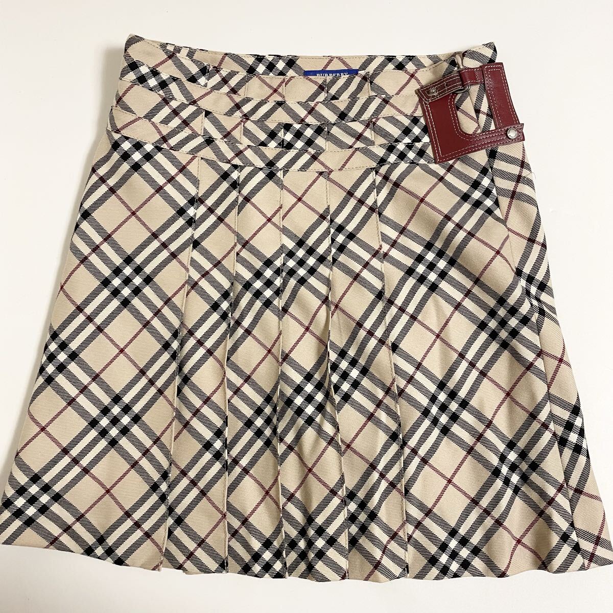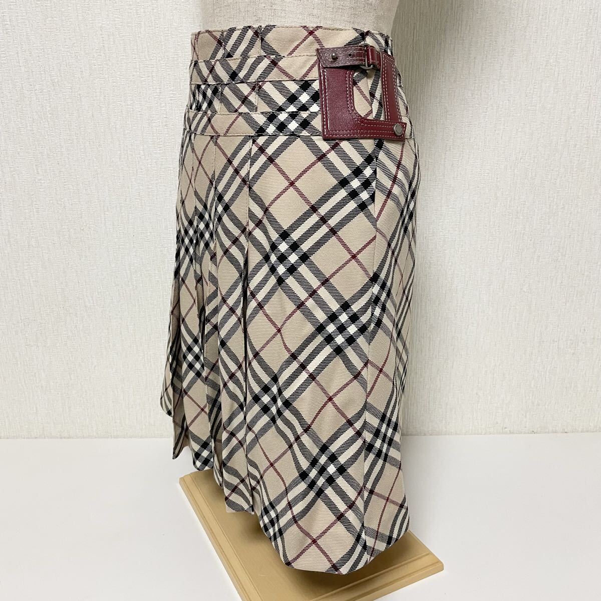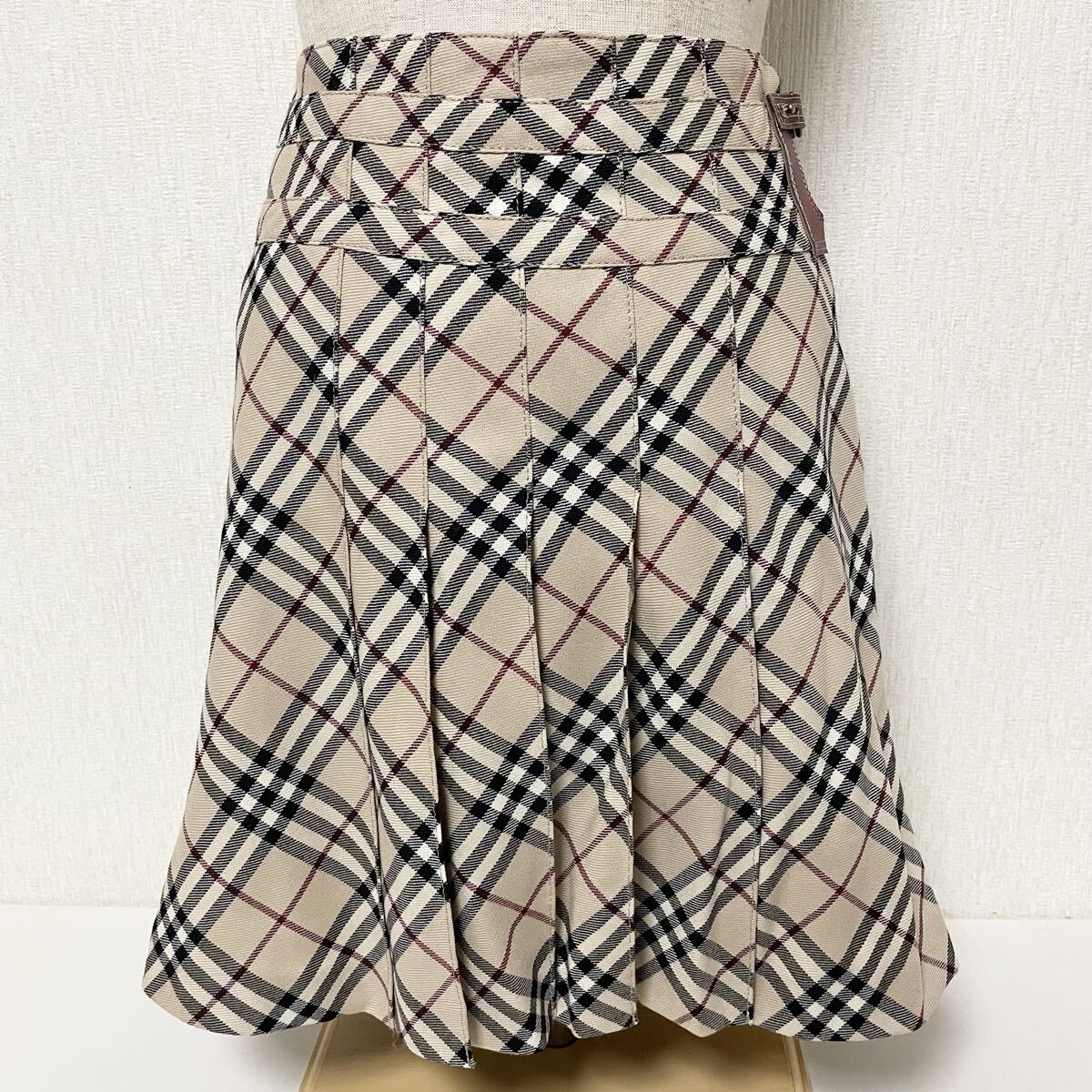 即決☆BURBERRY バーバリー ブルーレーベル ノバチェック プリーツ ウール スカート 36 ベージュ S