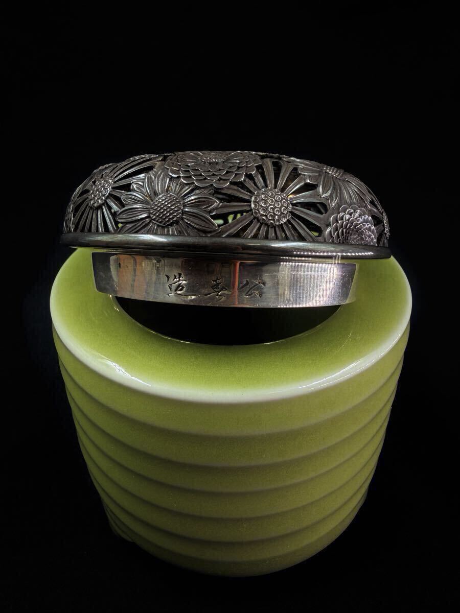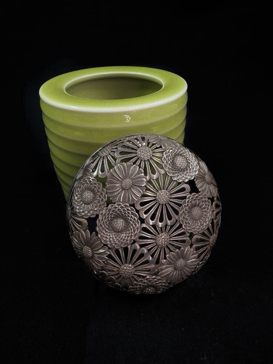 ・今回の出品は[葉] 501 米沢隆久 黄釉香炉 銀火屋 公寿造 菊花透文 共箱 陶歴付 煎茶道具火屋重さ104gです。