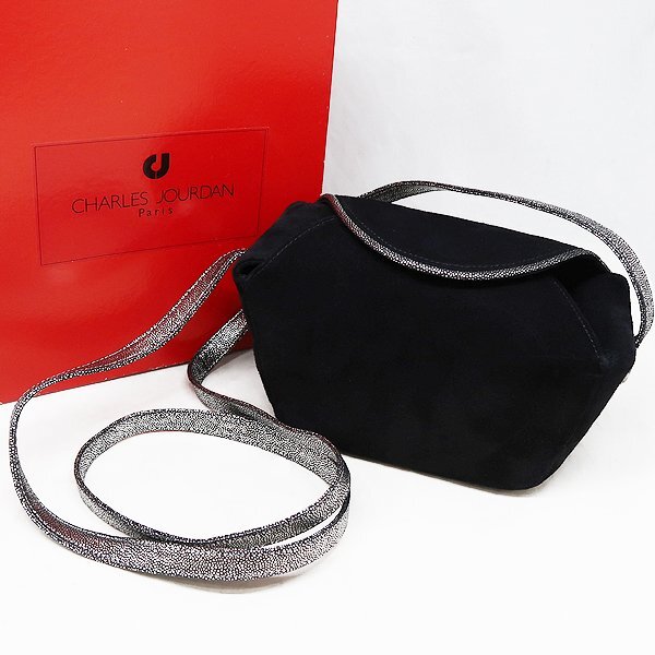 DKG★送料無料★ 美品 CHARLES JOURDAN シャルルジョルダン スエード ショルダーバッグ ブラック ショルダーポーチ ポーチ バッグ
