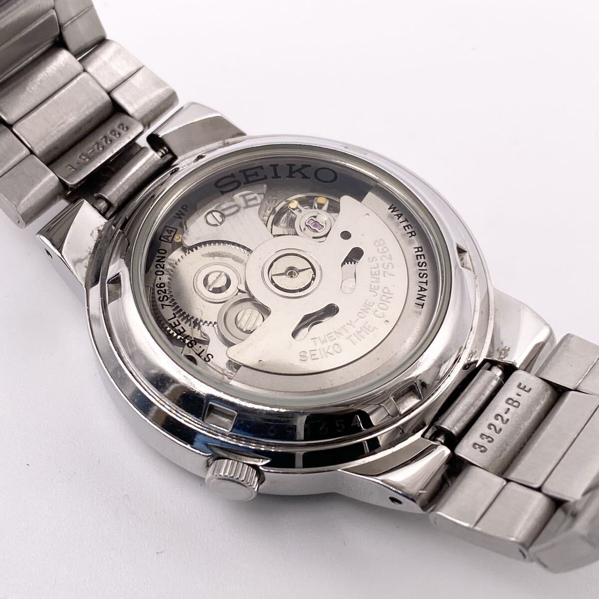 稼働 欧米輸出仕様自動巻き 7S26-02N0 21石 デイデイト 裏スケ 3針 腕時計 アナログ ラウンド ウォッチ 金属ベルト ステンレススチールベルト メンズ
