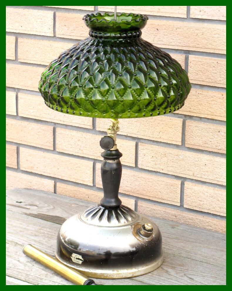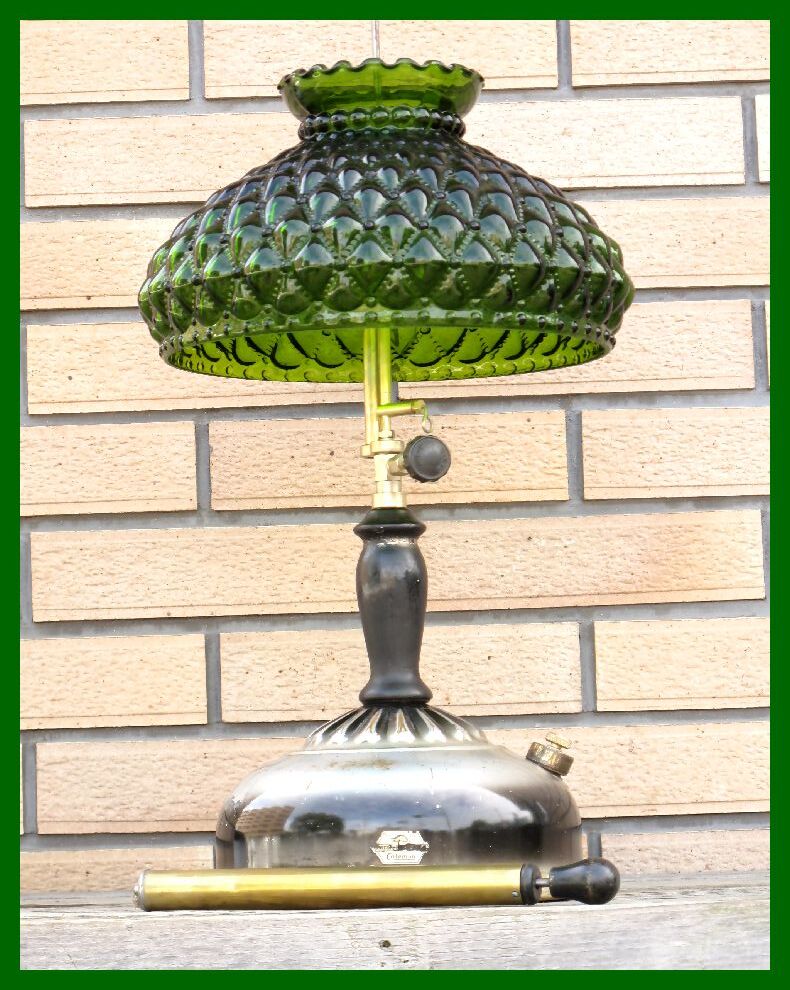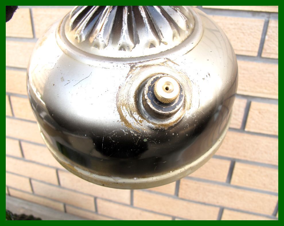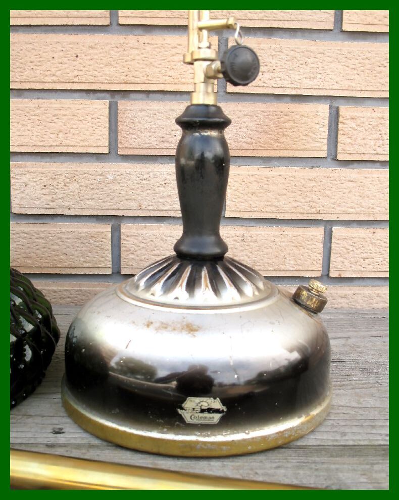 【M】131 USA ブラックシルバーリブタンク クイックライト コールマン ダイヤモンド型緑ガラスシェード ハンドポンプ付