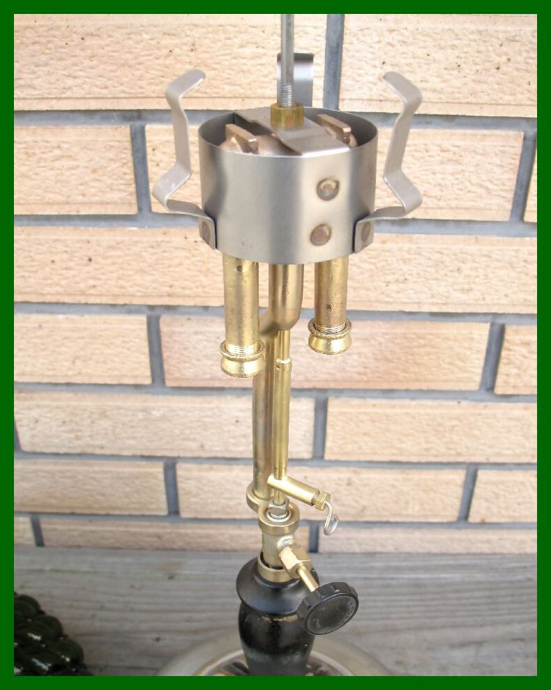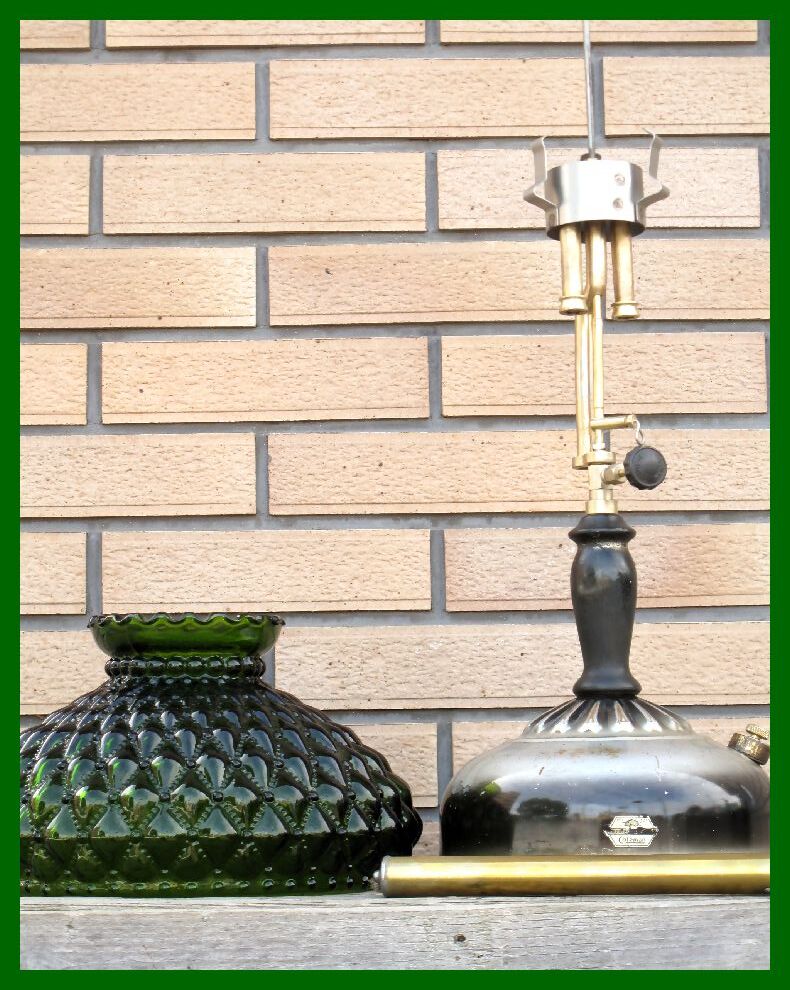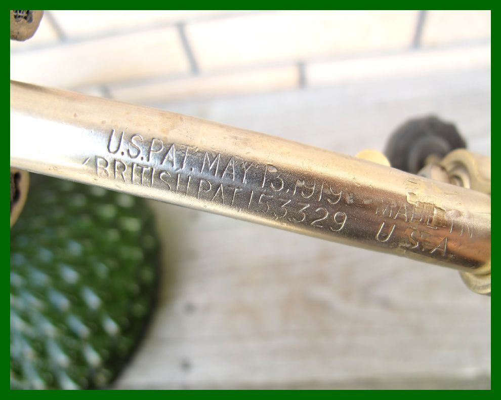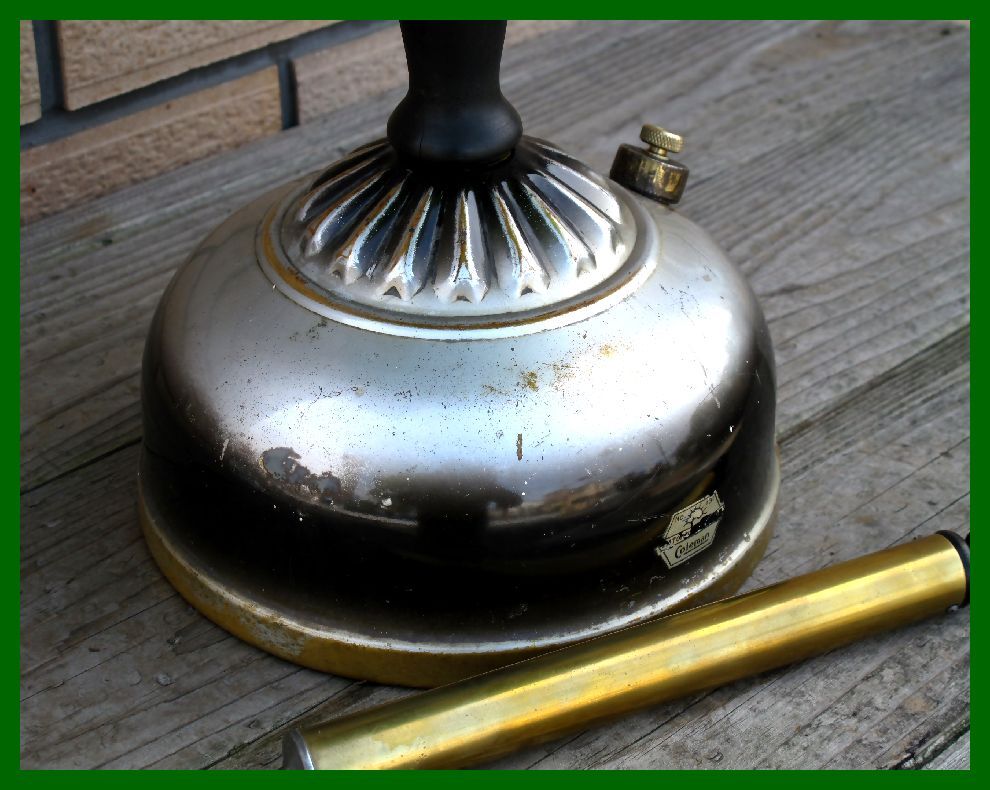 【M】131 USA ブラックシルバーリブタンク クイックライト コールマン ダイヤモンド型緑ガラスシェード ハンドポンプ付