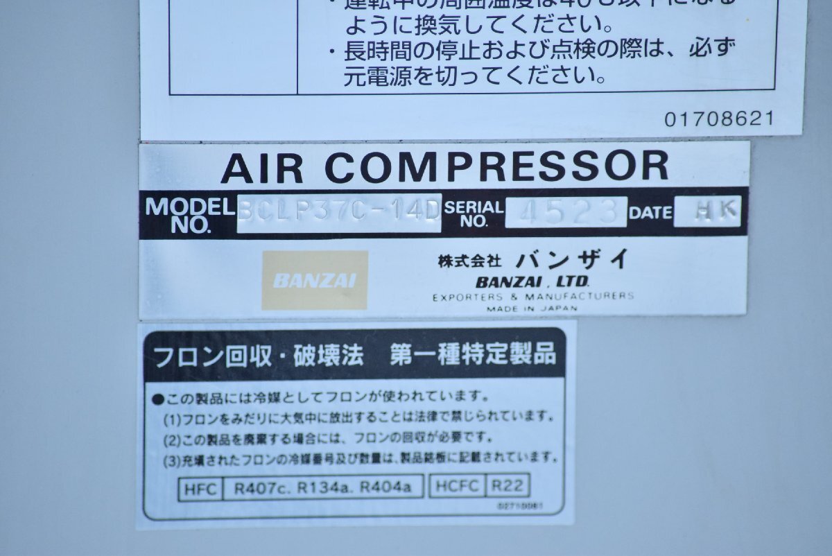 【3.7kW/5馬力】パッケージ式コンプレッサー バンザイ(BANZAI) BCLP37C-14D 60Hz 動画あり 点検、清掃済み!!三重県