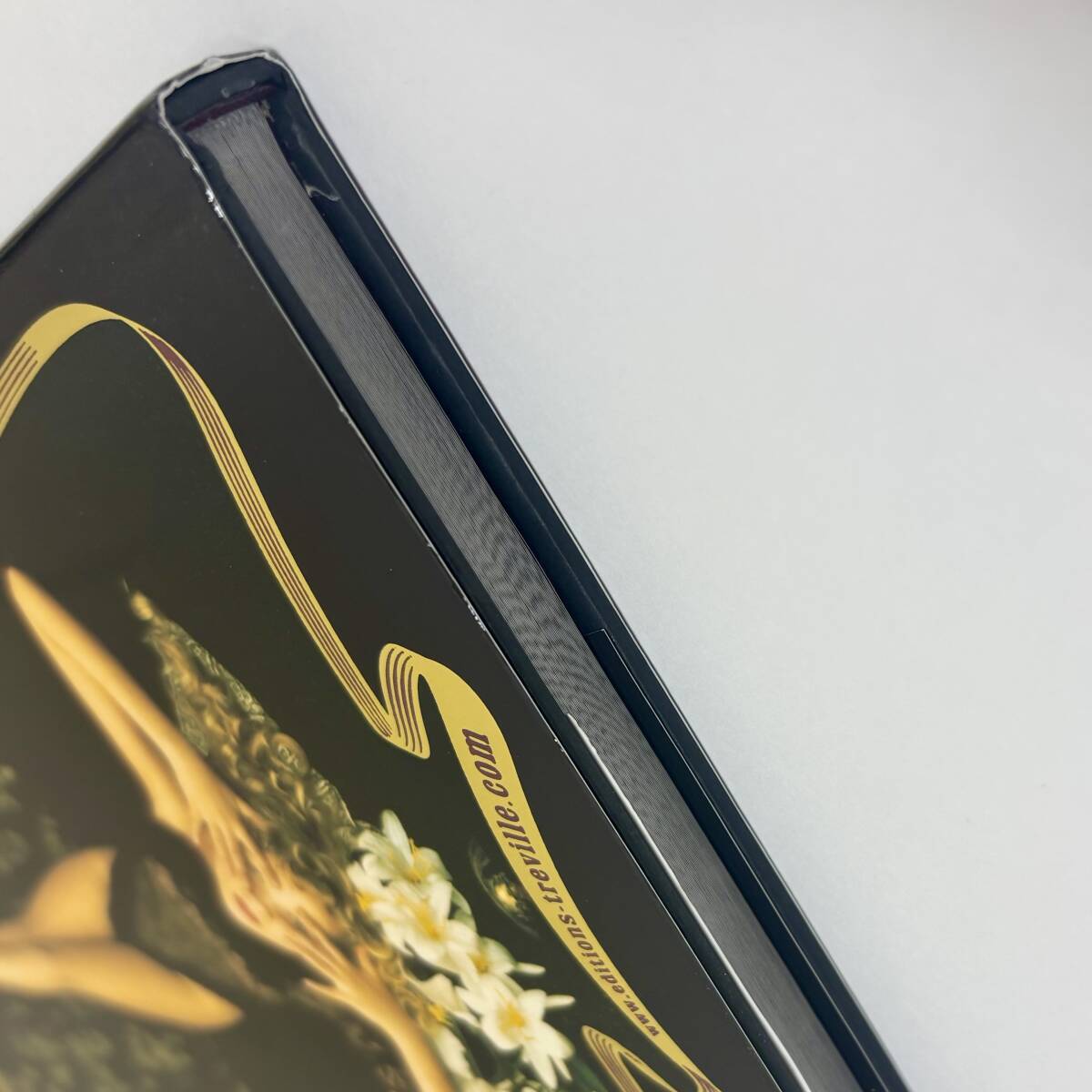 幻想的で妖艶な美の世界を創出したフランスの写真家 Irina Ionesco(イリナ・イオネスコ) による、伝説的写真集『R』です。金色の装飾枠と黒の背景が織りなすデザインは、まさにイオネスコの耽美的世界観を象徴するもの。被写体の存在感、構図の緊張感、光の演出など、彼女の芸術性を堪能できる内容となっています。