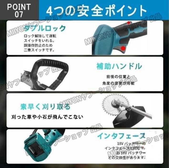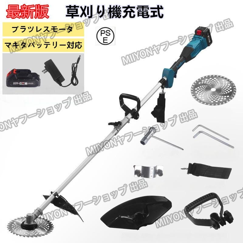 草刈り機 充電式 マキタバッテリー対応 電動 草刈機 9インチ ブラシレスモータ 刈払機 肩掛け付き 替刃付き コードレス 多機能 lhw219