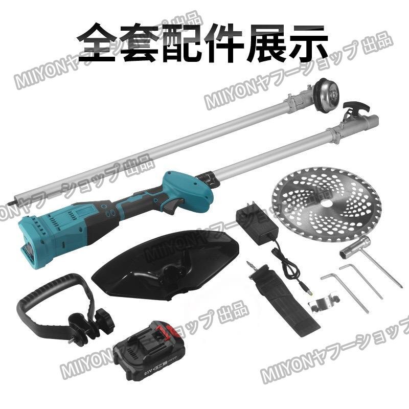 草刈り機*1、 チップソー×1、L型ソケット*1、補助ハンドル*1、肩掛け*1 電池*1