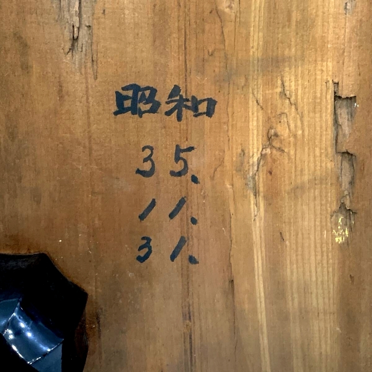 昭和35年(1960年)頃の木製脚付き囲碁盤で、裏面には当時の手書き日付があります。