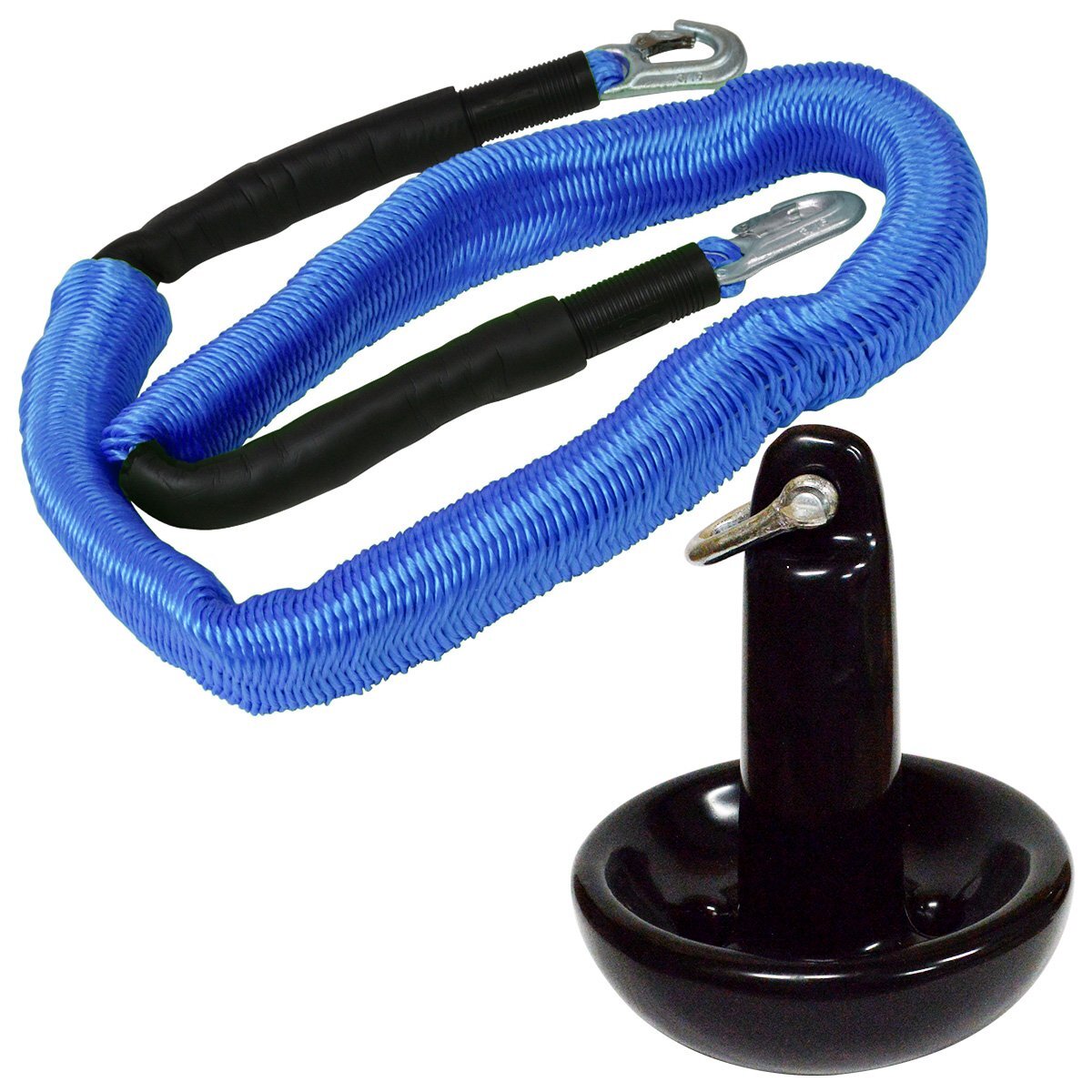 『伸縮ロープ/アンカーセット』マッシュルームアンカー 8LBS 3.5kg 黒 ブラック 6M フロート のびのび アンカー ロープ 青