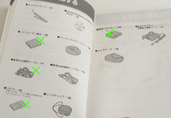 欠品:リチウムイオン電池、リモコン、AVケーブル、接続アダプター(AV機器接続用)