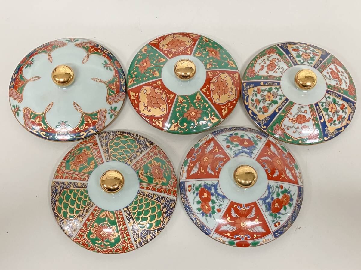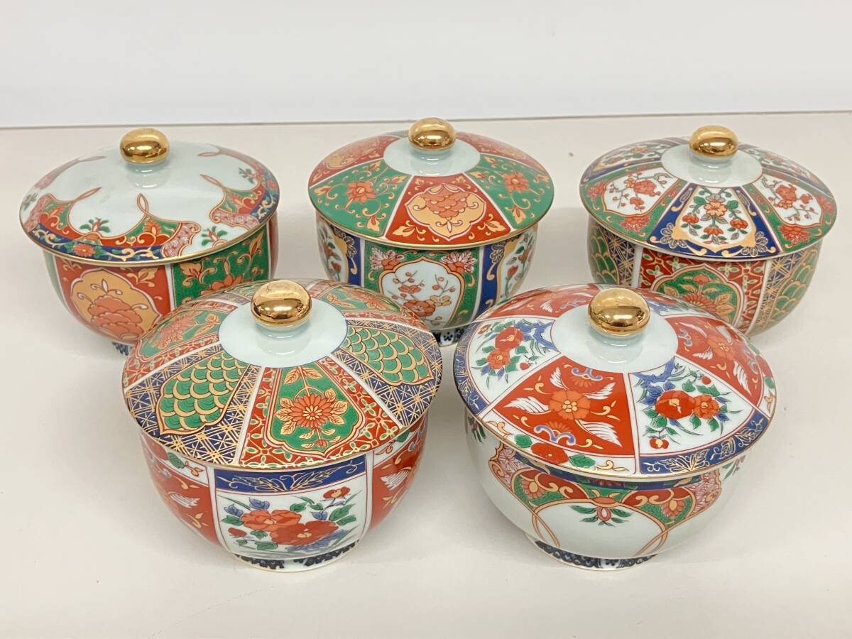ロ711-042 有田焼 冥陶窯 5客 セット 蓋つき湯呑み 金彩 湯呑み茶碗 食器 中古品 ヤ80