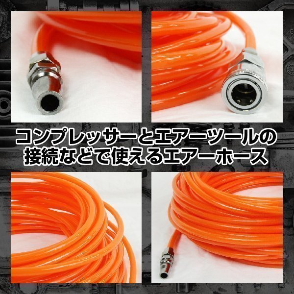 コンプレッサーとエアーツールの接続などで使えるエアーホースです。