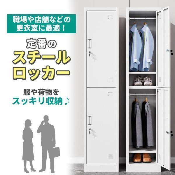 ロッカー スチールロッカー 2人用 ホワイト 白 鍵付き スペアキー付き 1列2段 スチール製 収納 オフィス 事務所 会社 店舗 学校 業務