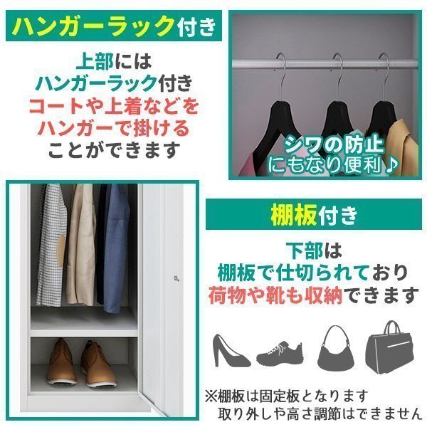 上部にはコートなど長さのあるものなど、ハンガーでかけられるハンガーフック付き。