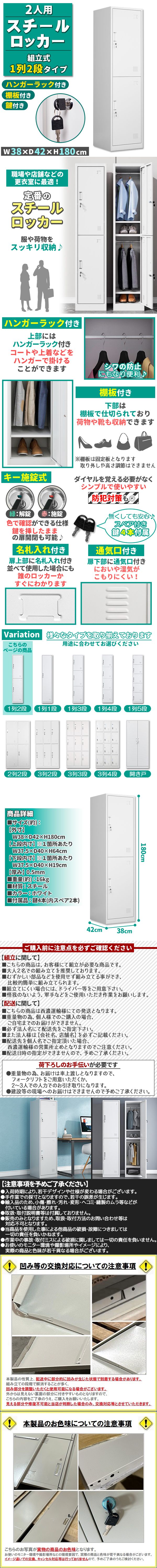 2人用スチールロッカー 【組立式・1列2段タイプ】