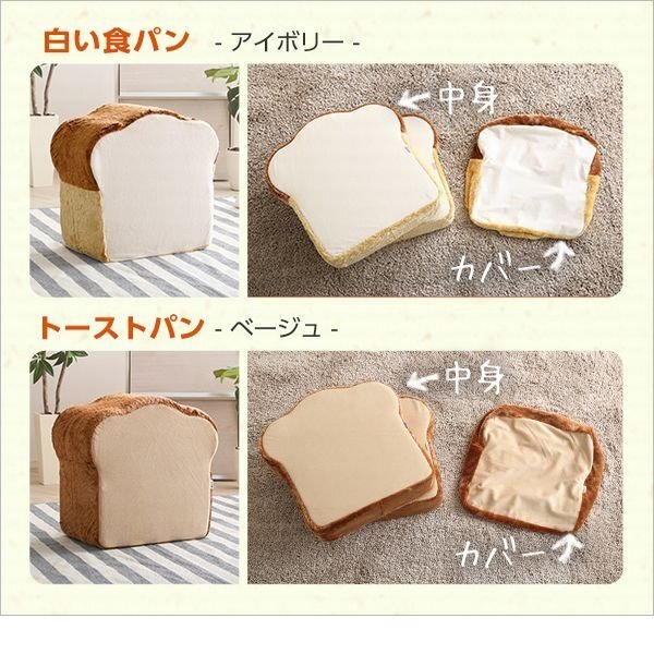 | 【ポイント】 おいしそうな食パン型クッションのBigタイプです。 安心の日本製だからギフトにも最適です。 沈み込みすぎない低反発クッションです。 肌ざわり抜群のカバーを外せば2枚切りのクッションに! ベーシックな白い食パンとトーストの2カラーがございます。 |