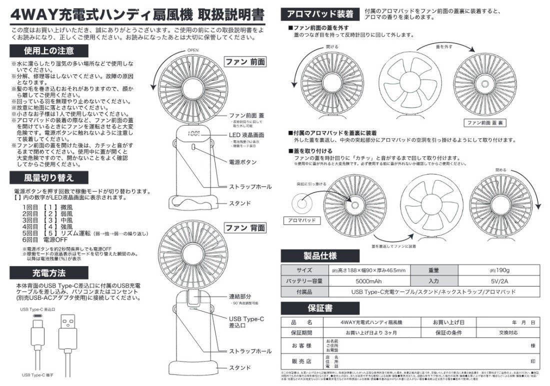 | 4WAY 充電式 ハンディ扇風機 ダークネイビー |