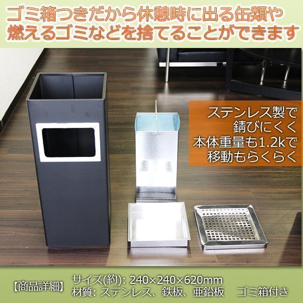 スモーキングスタンド 灰皿 ゴミ箱 付き ステン 角型 商業施設 ロビー 喫煙 スペース オフィス 黒 シンプル スタンド ステンレス製 軽量