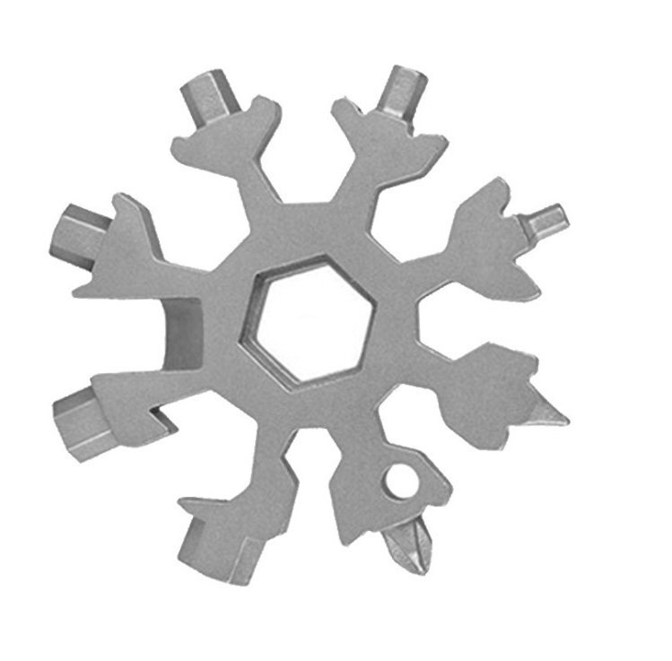 | 18機能が1つになった雪の結晶型マルチツール。 |