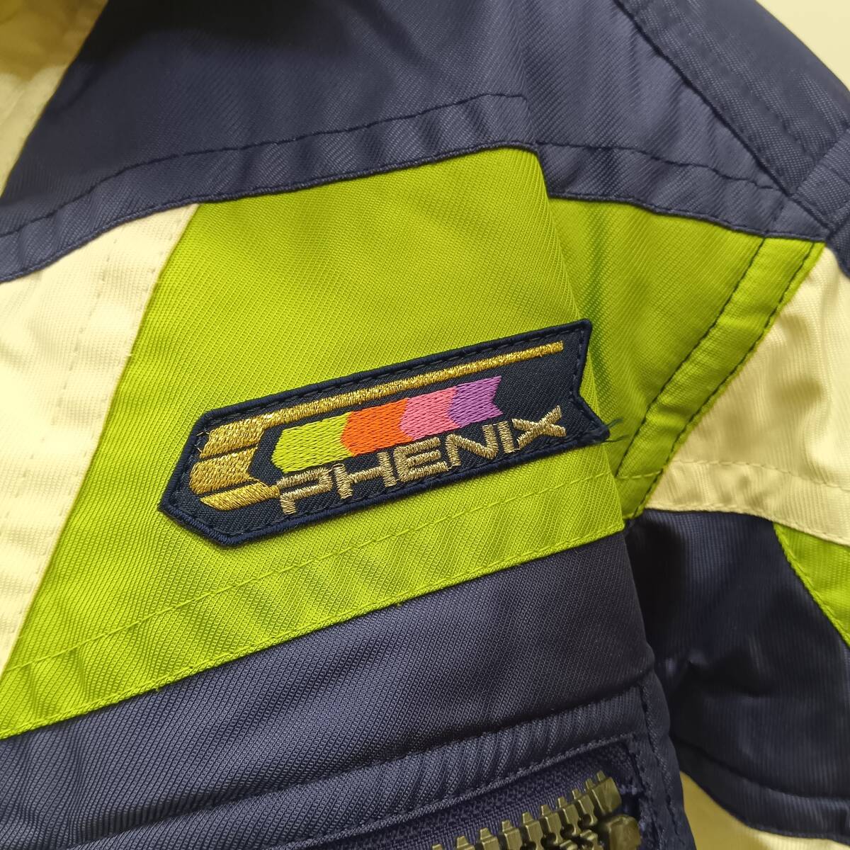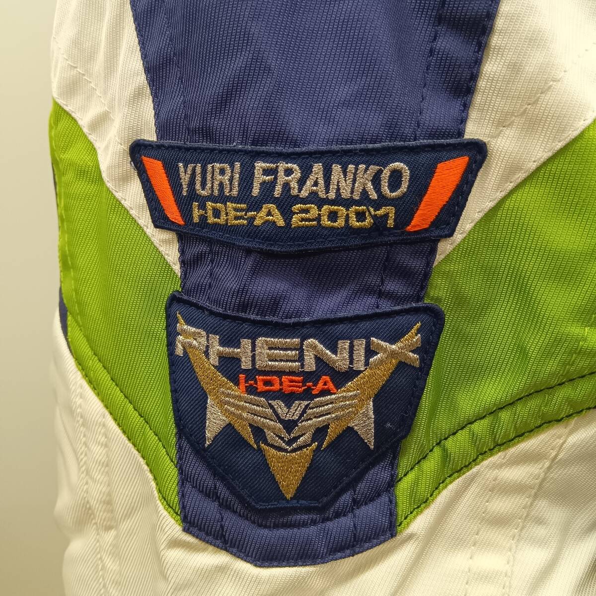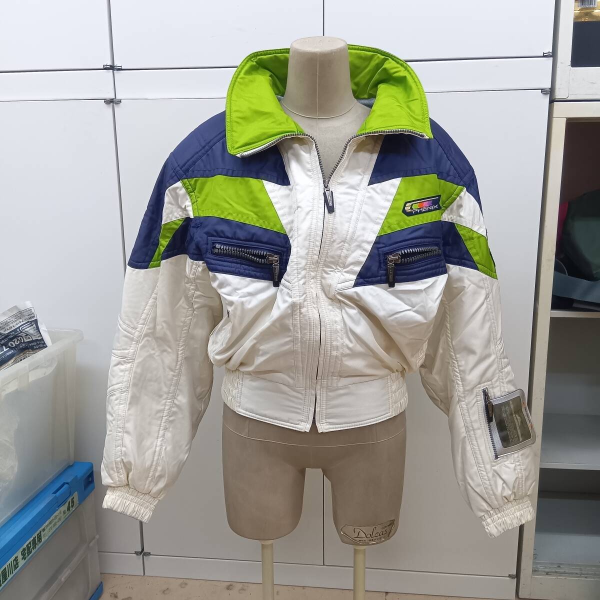 PHENIX(フェニックス)の高性能スキーウェアラインである「I-DE-A(アイデア)」シリーズのスキーウェアジャケットです。品番は「PA117-060」で、レジェンドスキーヤーの**ユリ・フランコ(YURI FRANKO)**とのコラボレーションモデルと見られます。白、紺、ライムグリーンのレトロかつ大胆なカラーブロックデザインが特徴で、ゲレンデで目を引く一着です。