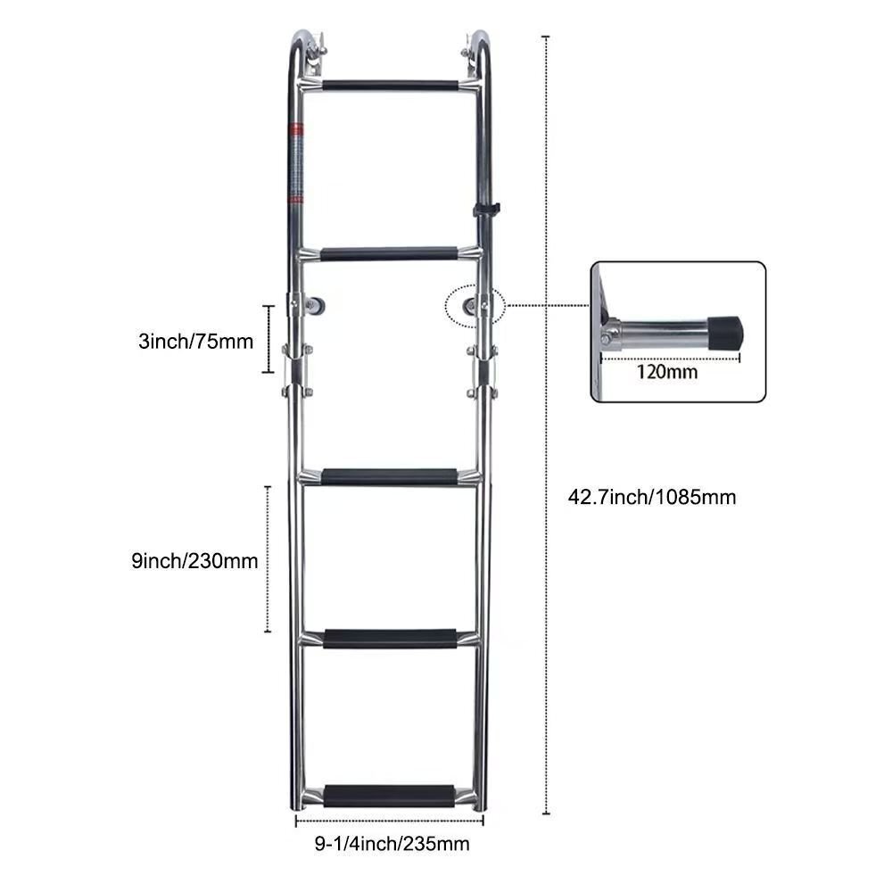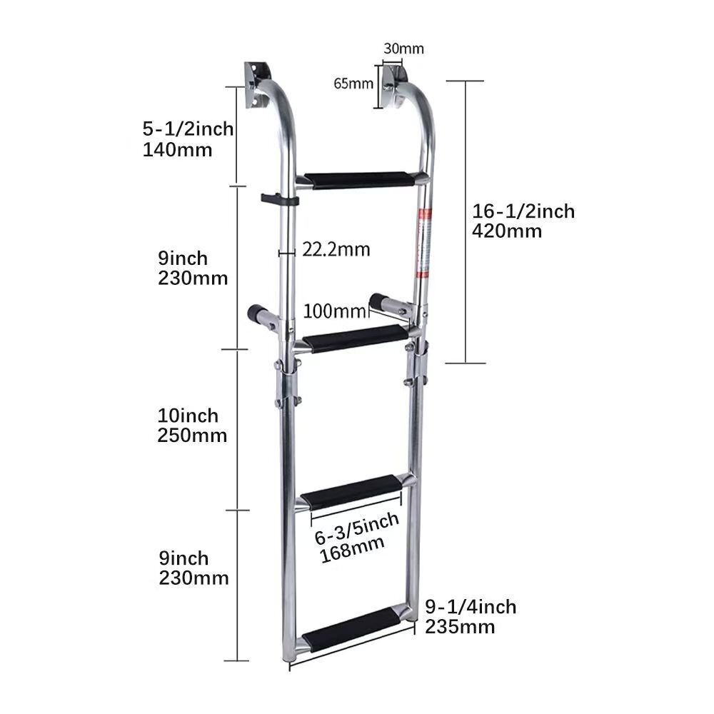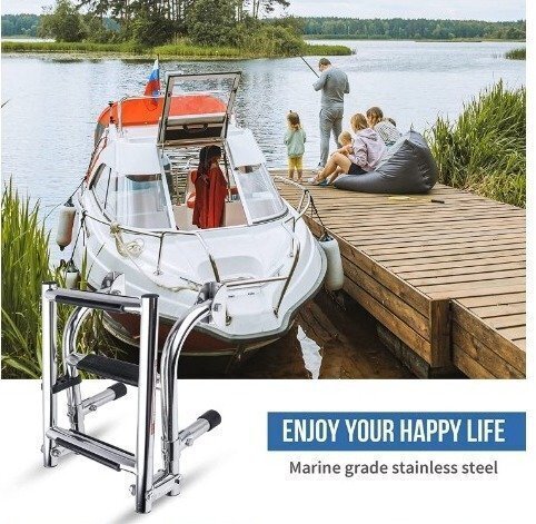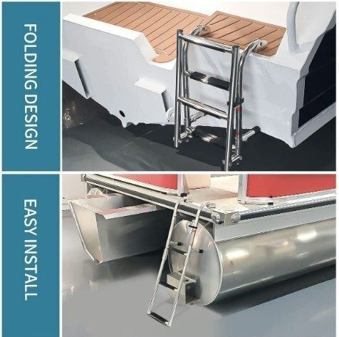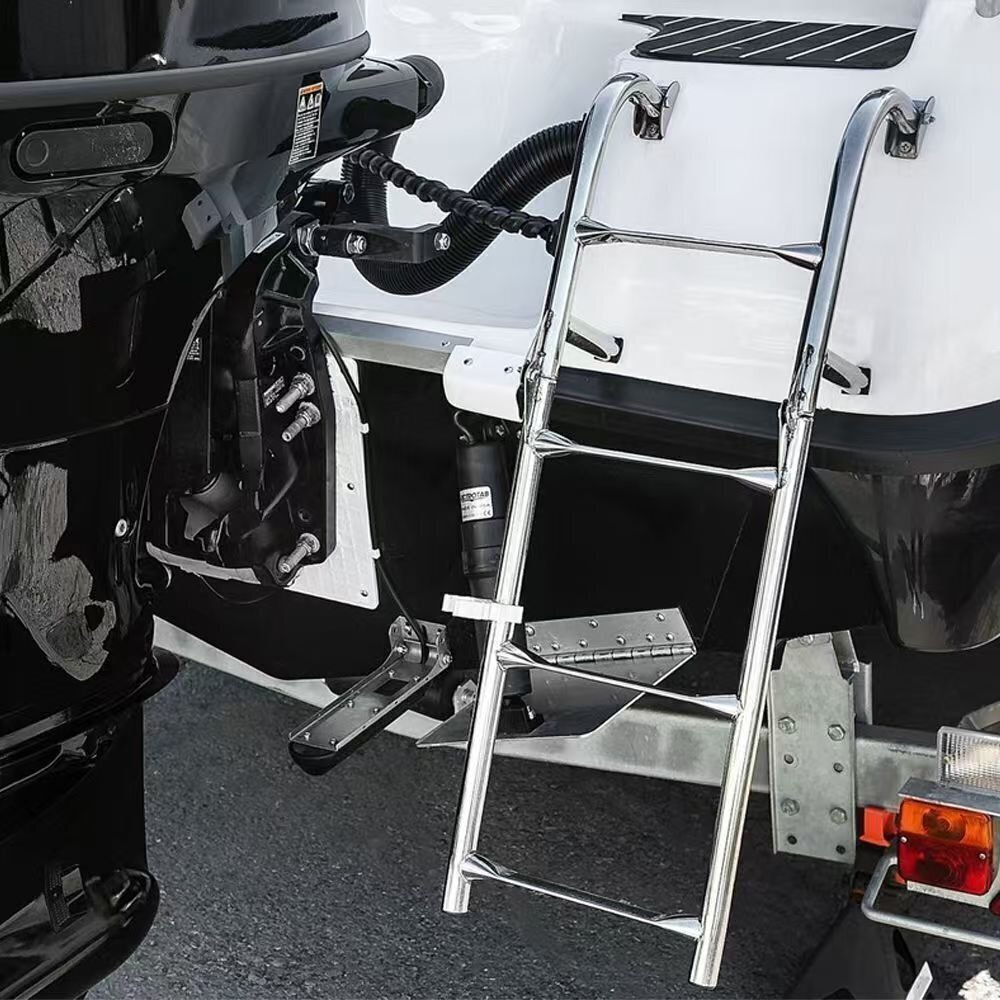 ボートアクセサリー.マリン.3ステップ.折りたたみ.ラダーボート.マリンステンレススチール.ポンツーンラダー.ポリッシュ
