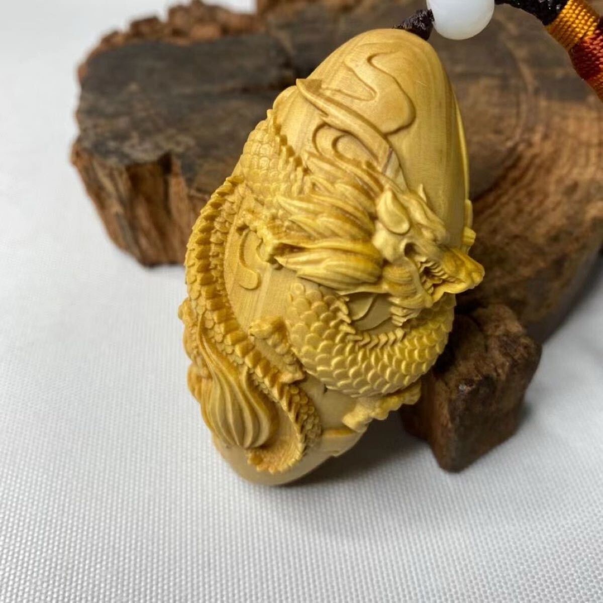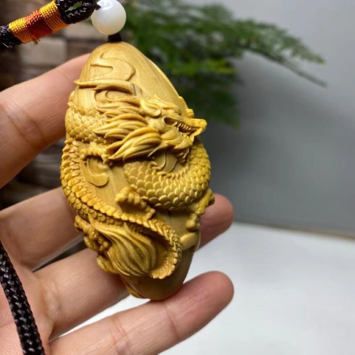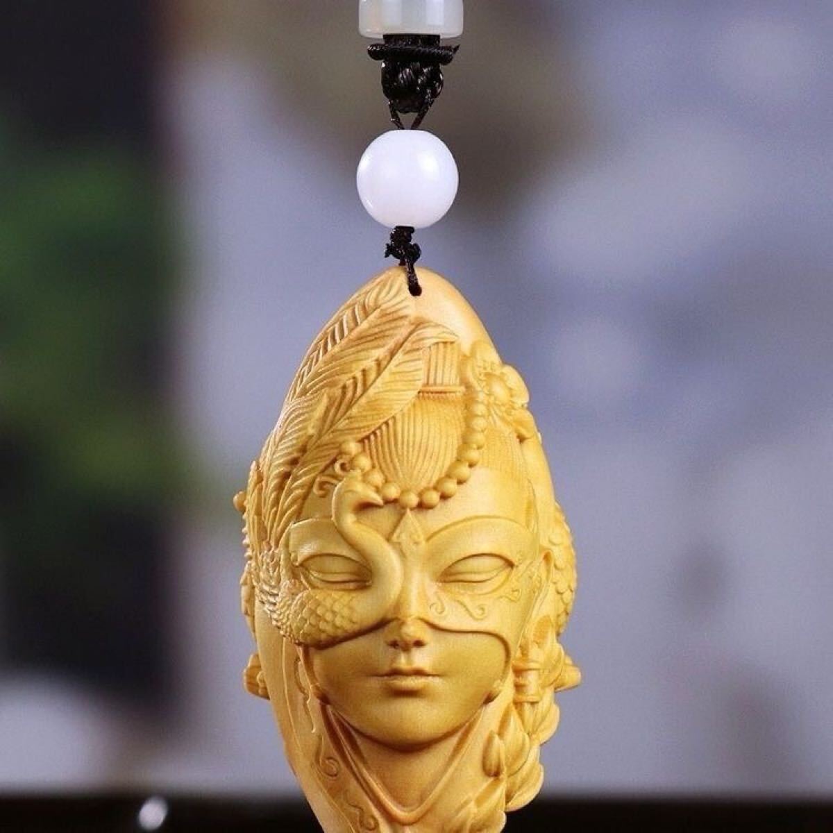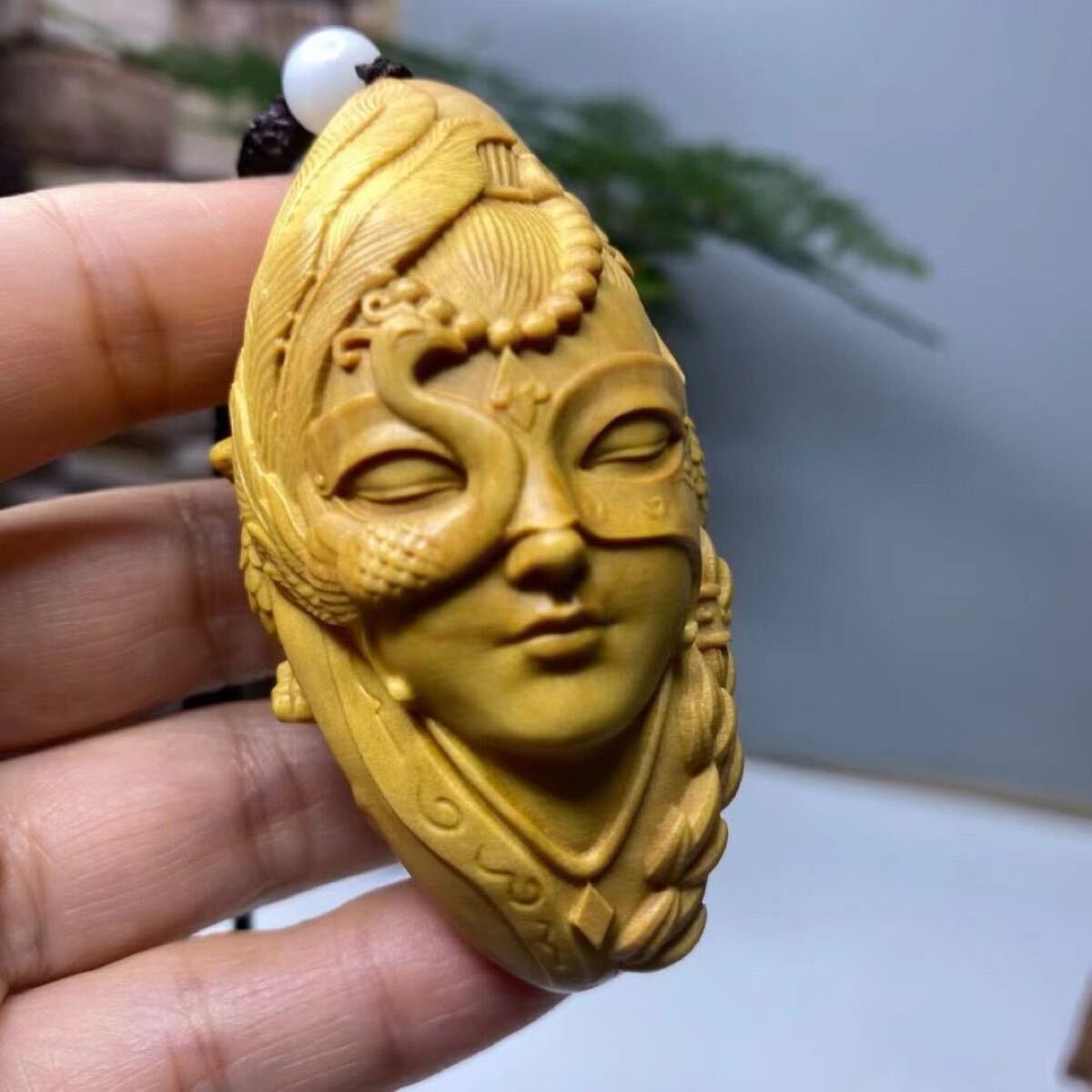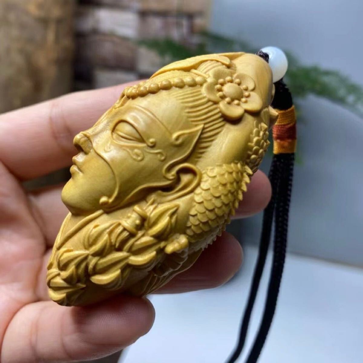 仏教美術 新作 高級柘植木彫 大唐美人 天然木製ハンドメイド/細工彫刻 プレゼント/開運風水厄除け 根付 高さ6cm ストラップ付き 美品