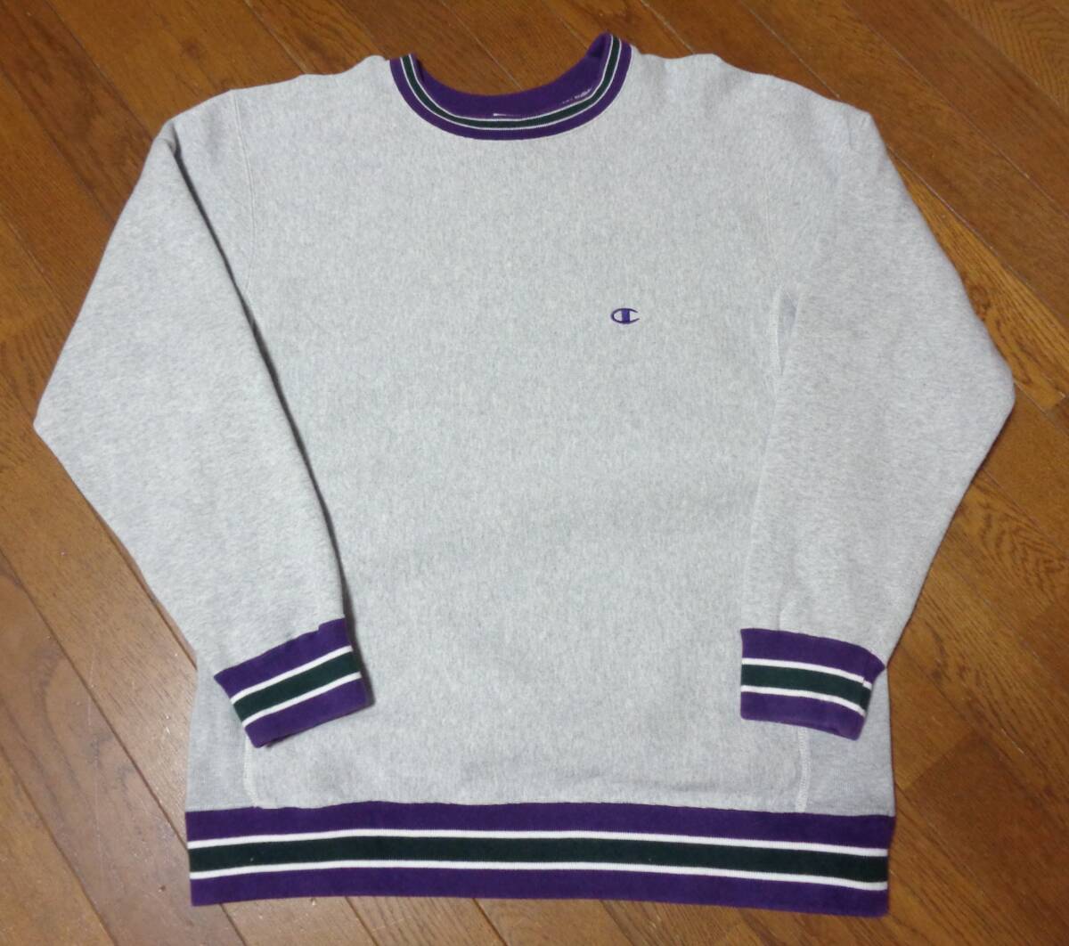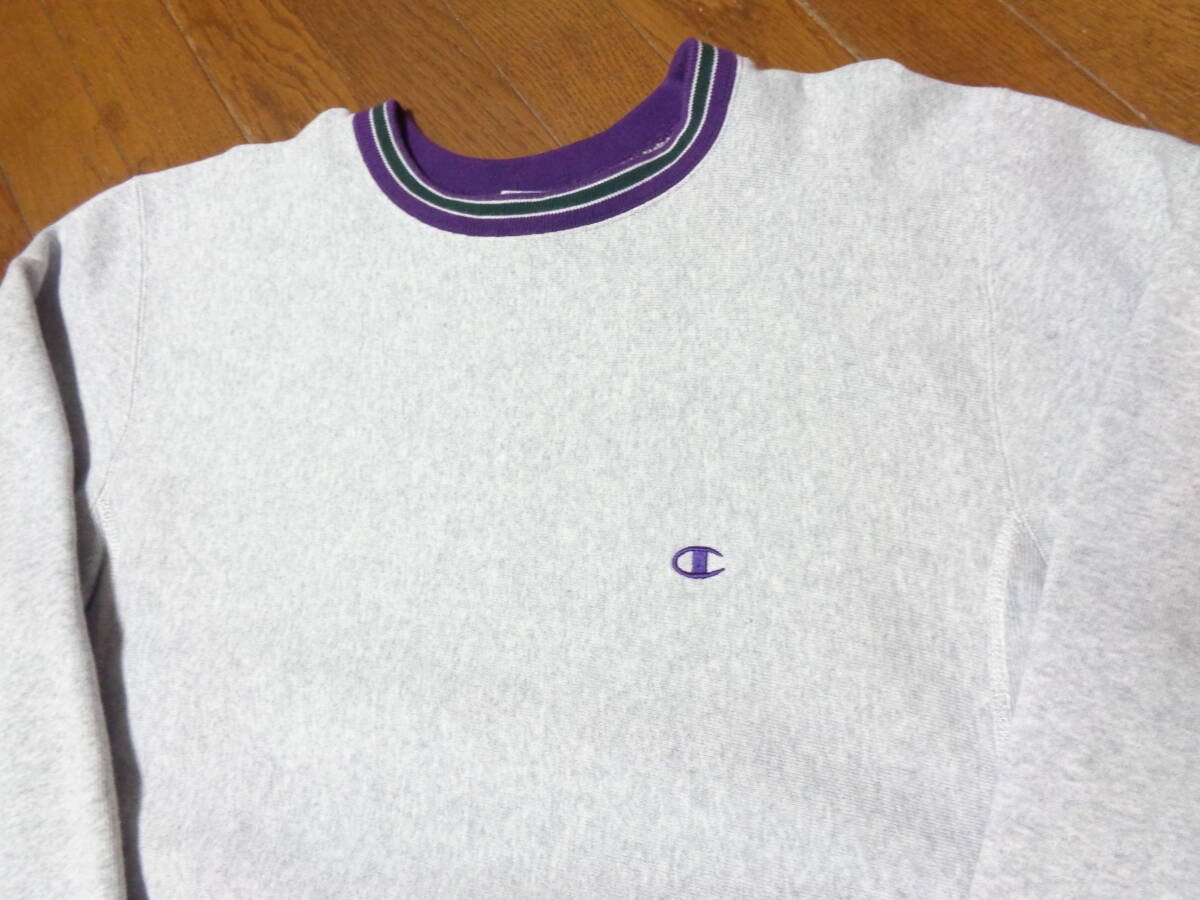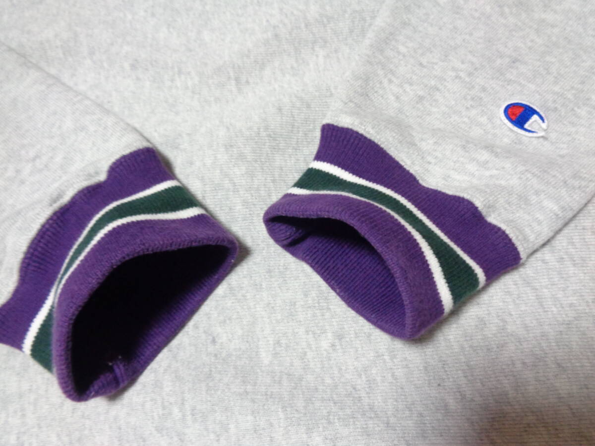 90s復刻青単タグ/XLサイズ/Championチャンピオン/11.5oz/リバースウィーブ/スウェット/トレーナー/リブラインパープルグリーン/グレー