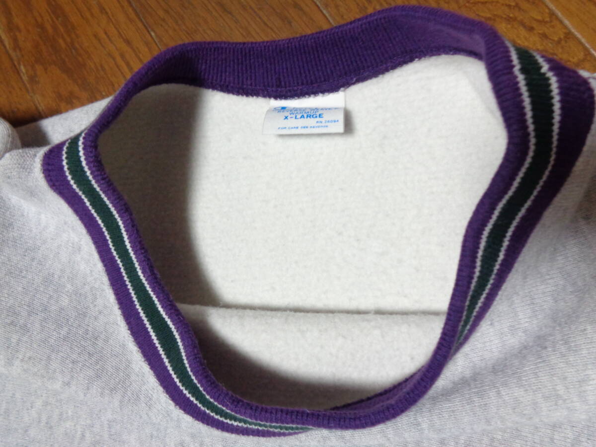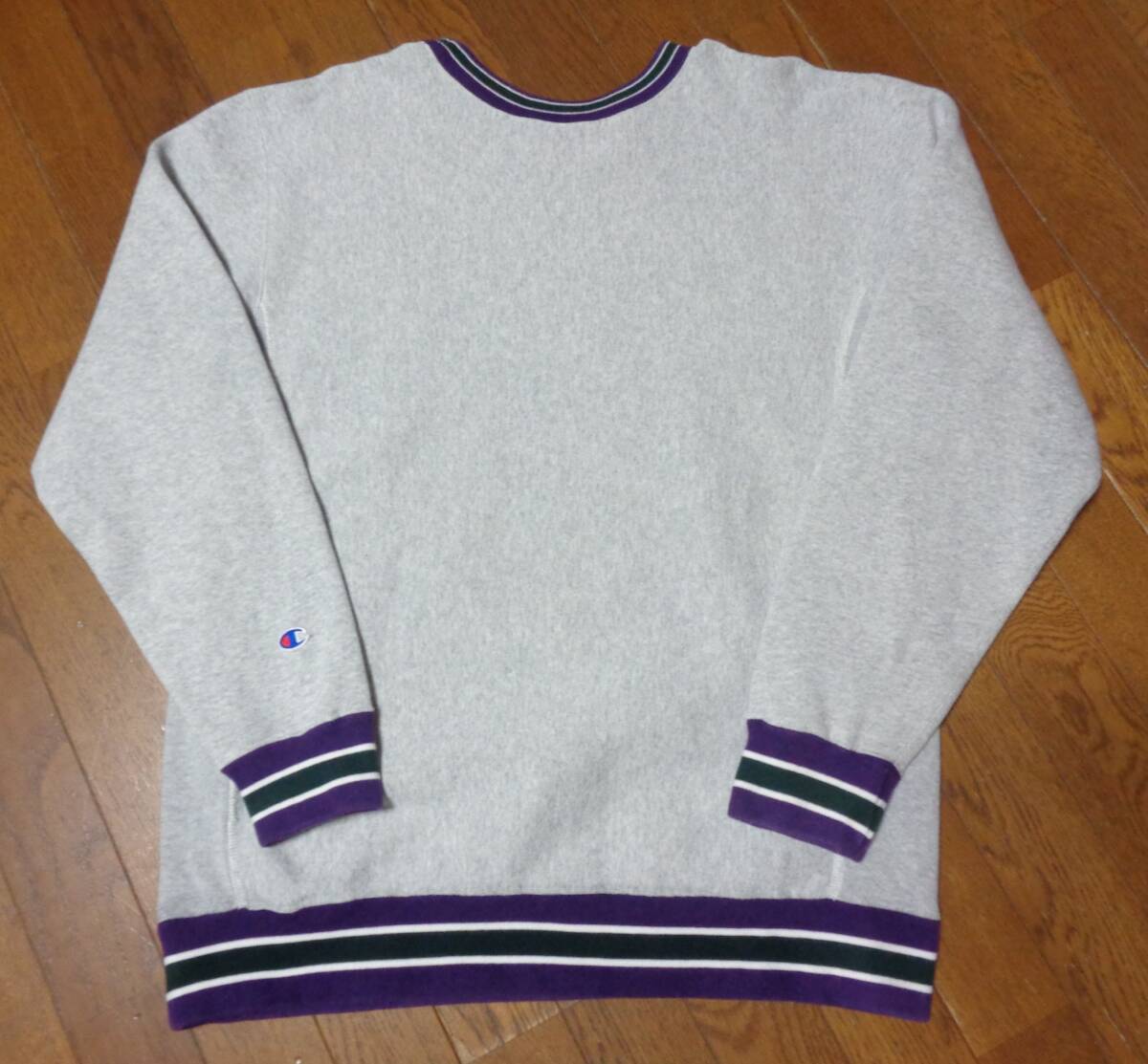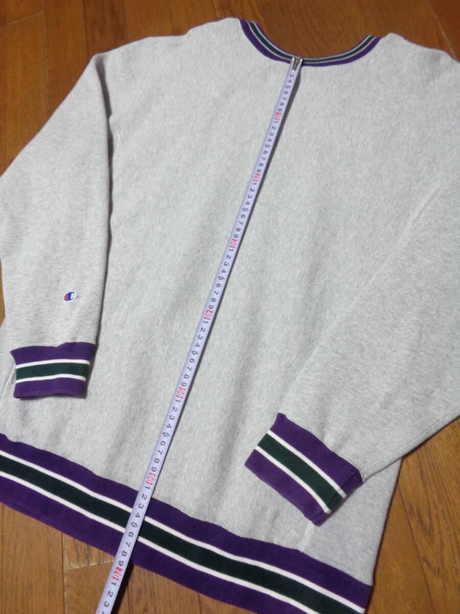 90s復刻青単タグ/XLサイズ/Championチャンピオン/11.5oz/リバースウィーブ/スウェット/トレーナー/リブラインパープルグリーン/グレー