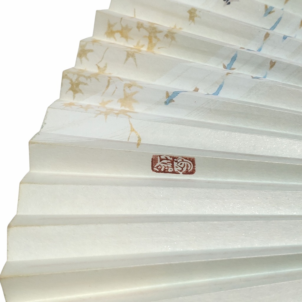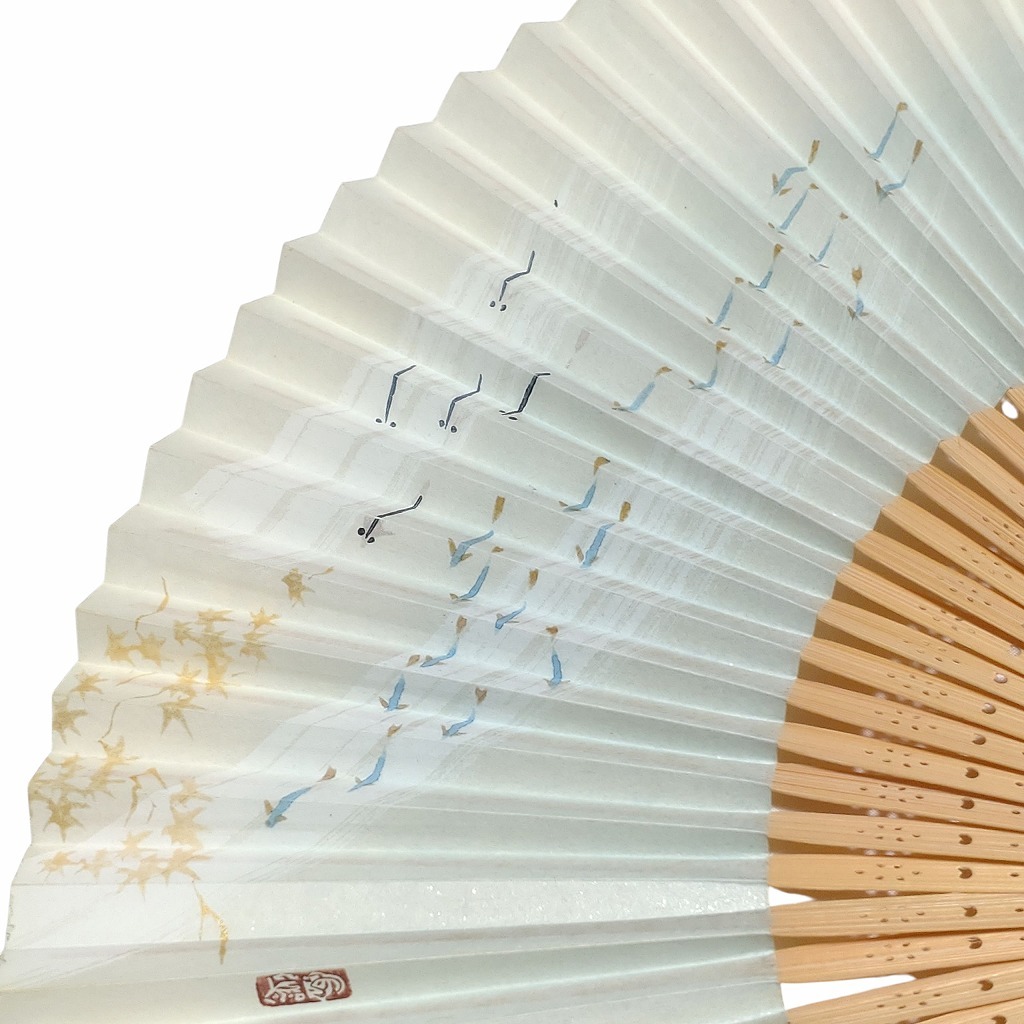 扇子 紙扇子 紅葉 清流 小魚 全長約21.8㎝ せんす センス 茶道具 和装 小物 【5288】