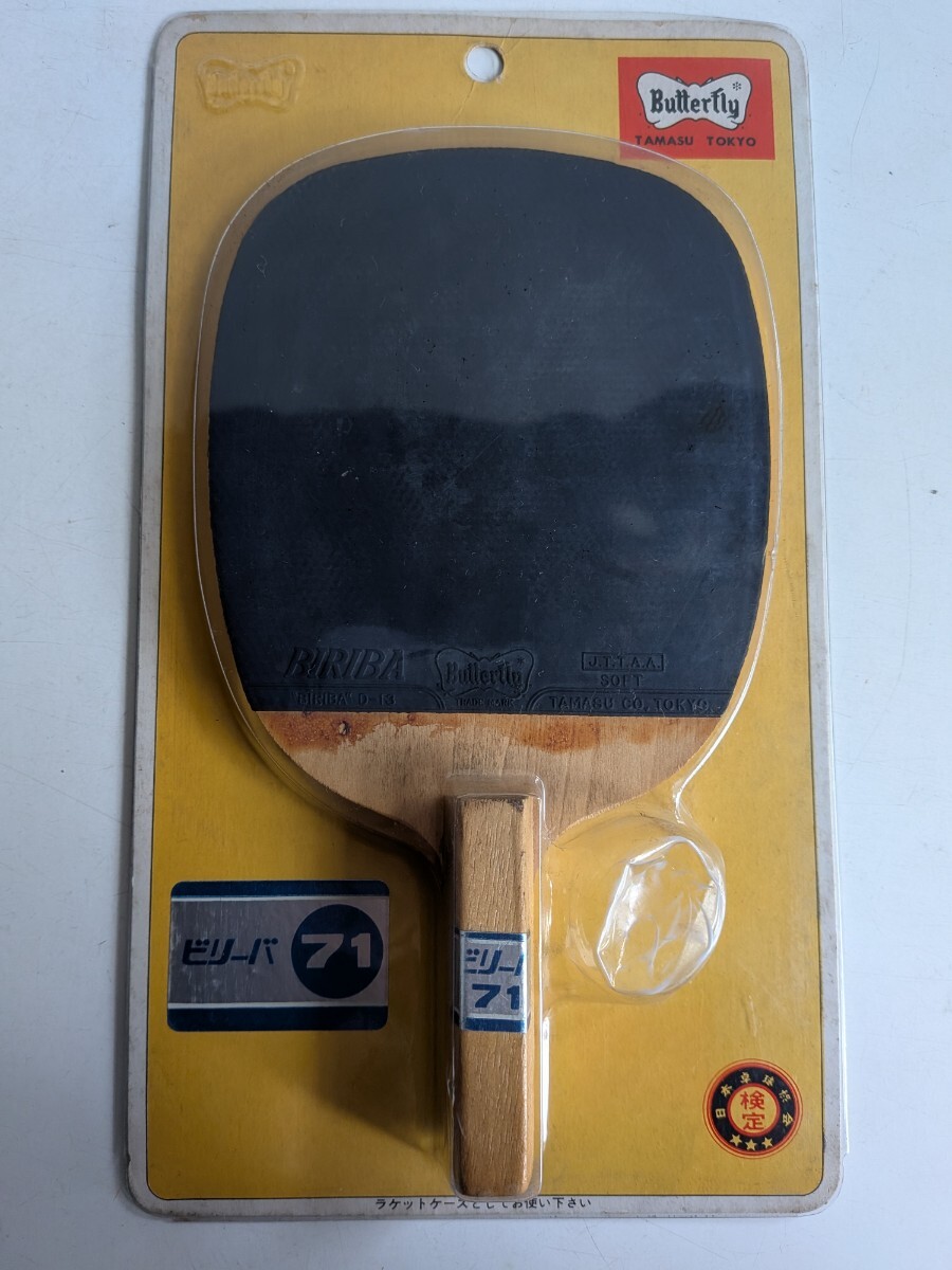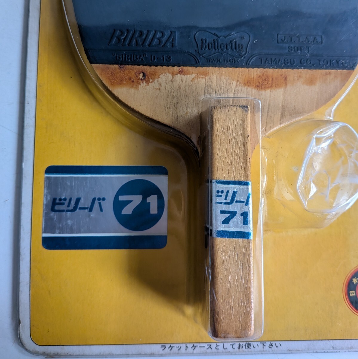 ブラジルの天才卓球選手「ビリーバ氏」の名前を冠したビリーバシリーズ、ラバー張りペンホルダーラケットで黄色のパッケージ付、タマスJ.T.T.A.A刻印