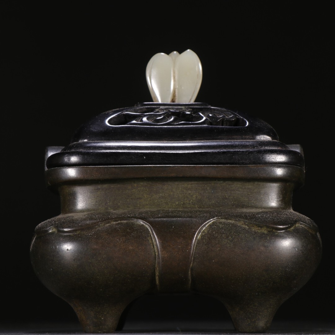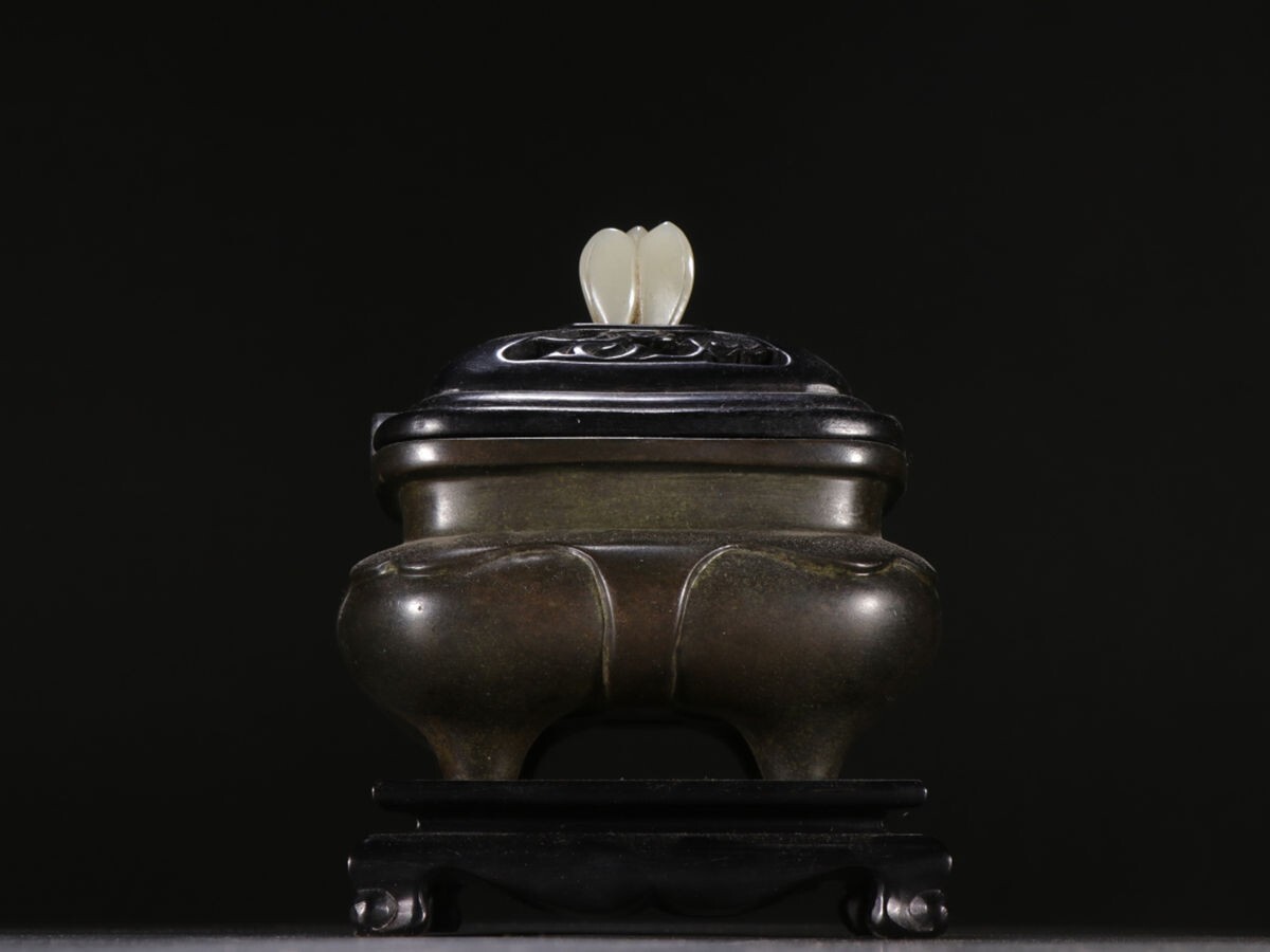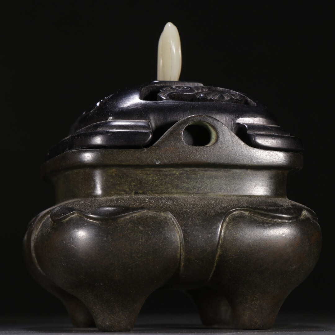 【瓏】古銅鏨刻彫 四足香薰炉 明時代 飛雲閣款 銅器 古美術 骨董品 香道具 蔵出