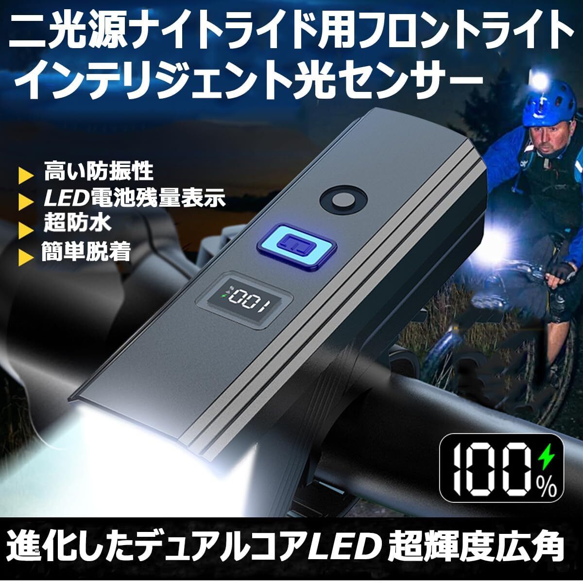 自転車 ライト【2025強化版デュアルコア強光2 LED】光センサー 自動点灯 自転車ライト 高輝度 4000ルーメン 5つ点灯モード
