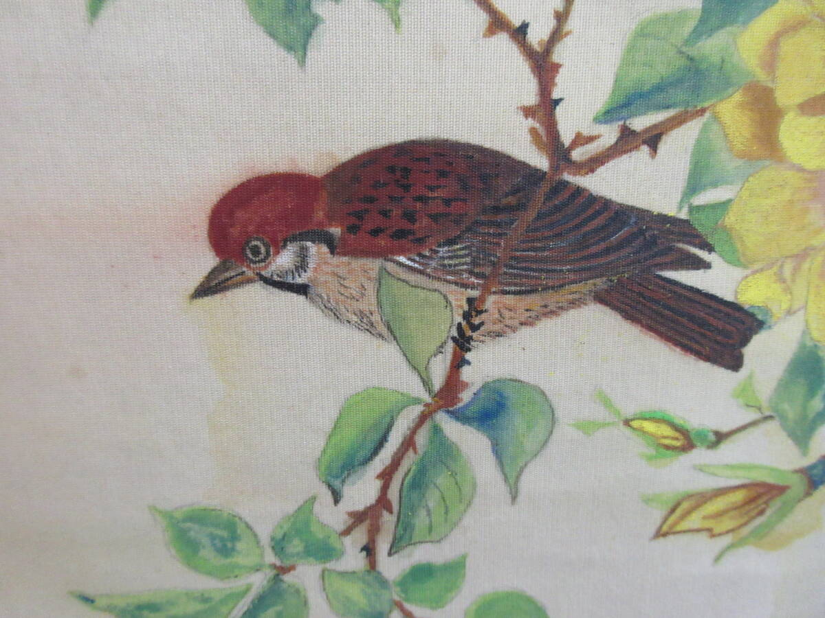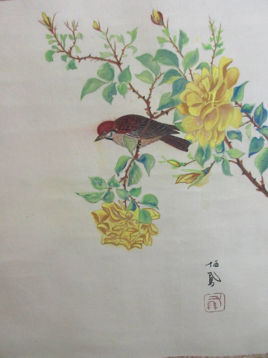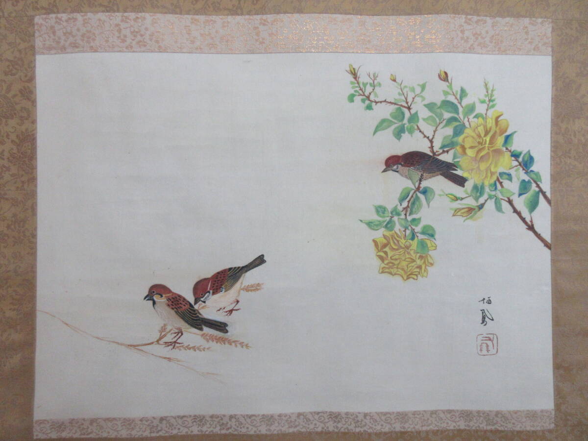 作品名    「雀之図」     絵絹に描かれた日本画・花鳥の絹本(:けんぽん)です。