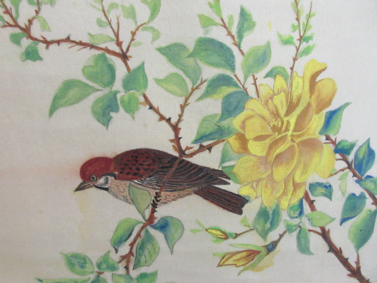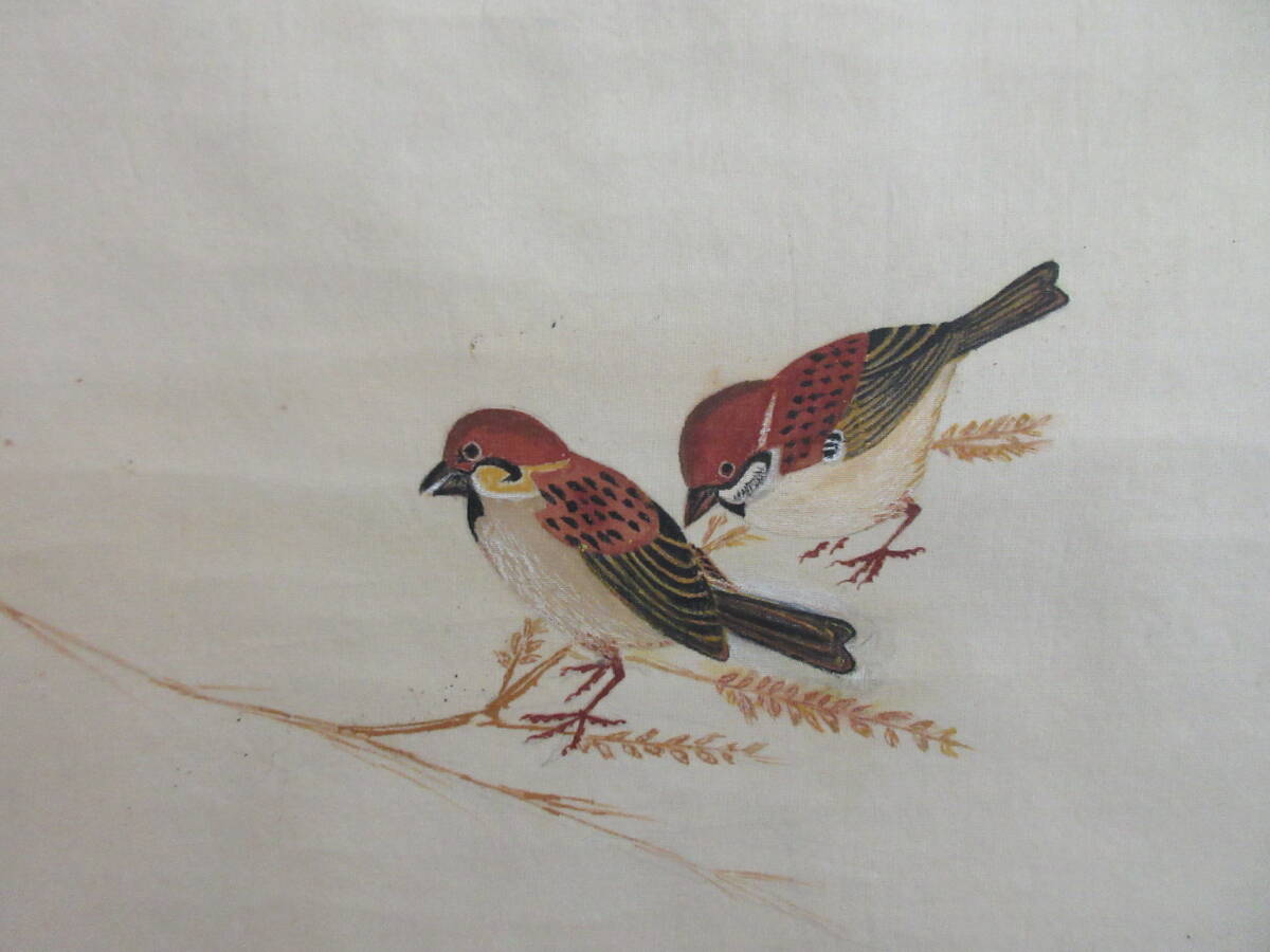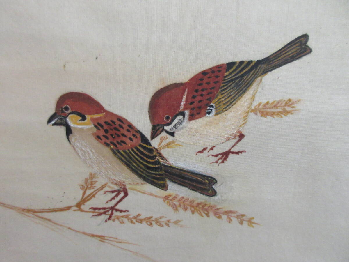 作品名    「雀之図」     絵絹に描かれた日本画・花鳥の絹本(:けんぽん)です。
