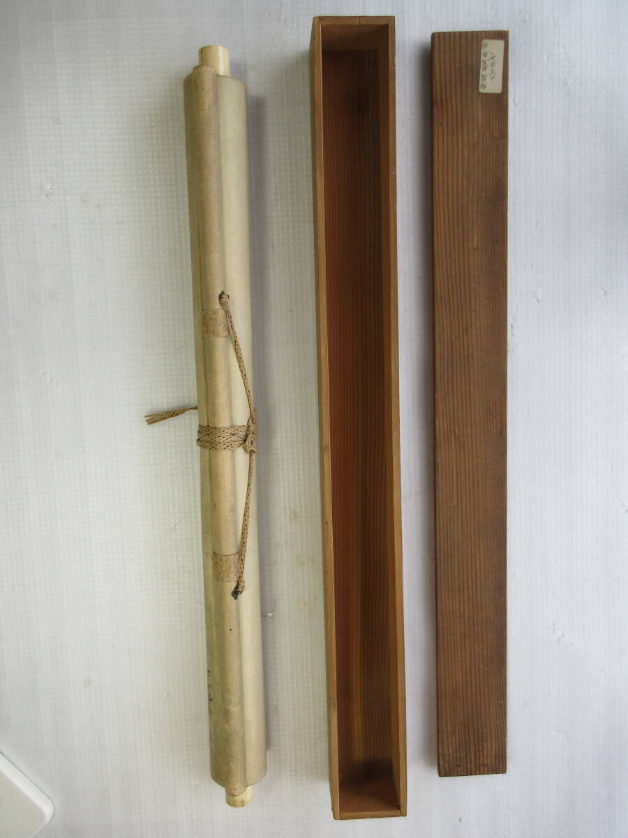 状  態        巻き保管による絹本に若干のシワヨレ、軸全体に少々傷みがあります。詳細は画像をご覧ください。