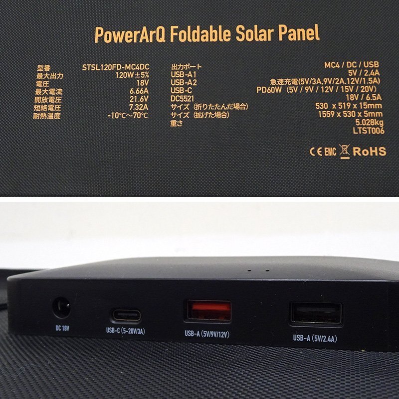 ★ジャンク★PowerArQ Solar Foldable 120W ソーラーパネル 折りたたみ式 STSL120FD-MC4DC★【HD423】
